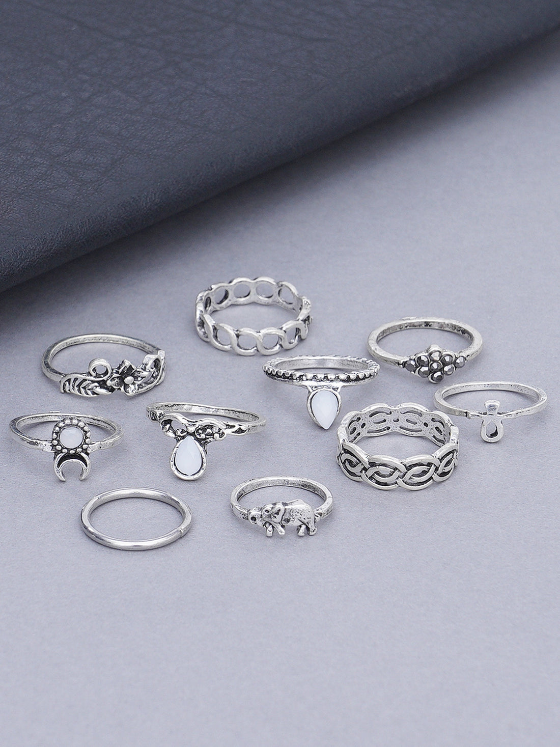 Karatcart Set of 10 Oxidised Silver Midi Ring for Women. Made of High-Quality Metal Alloy...