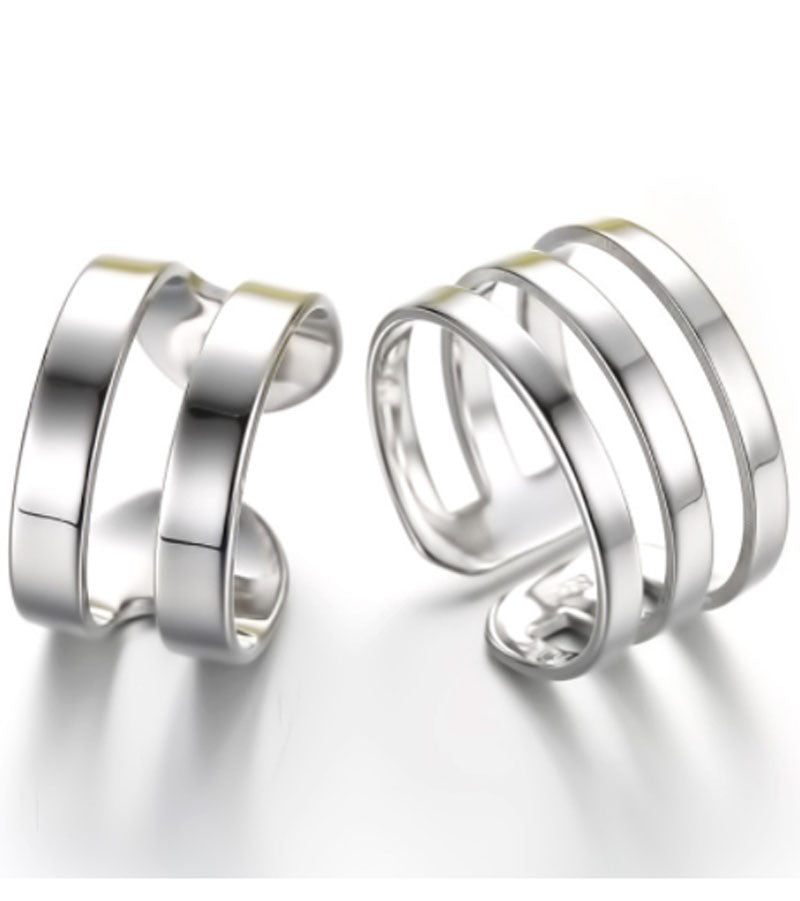 Platinum Plated Elegant Parallel Shanks Couple Adjustable Band Ring