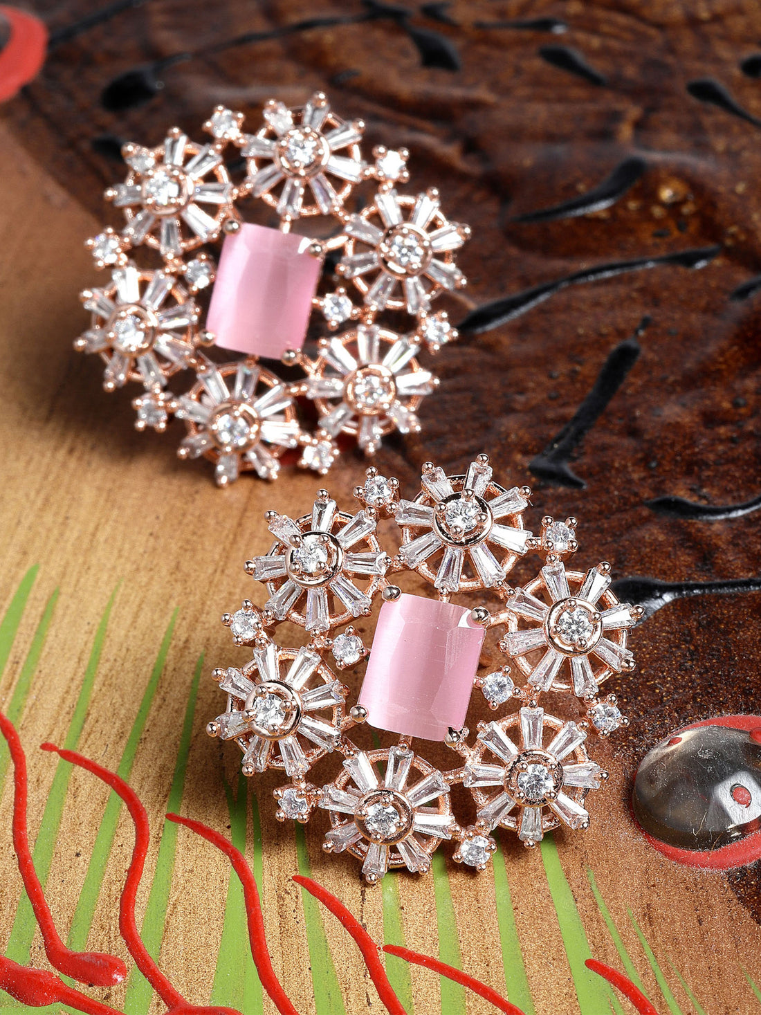 Rose Gold Plated Floral American Diamond Drop Earrings for Women .It is made with High-Quality...