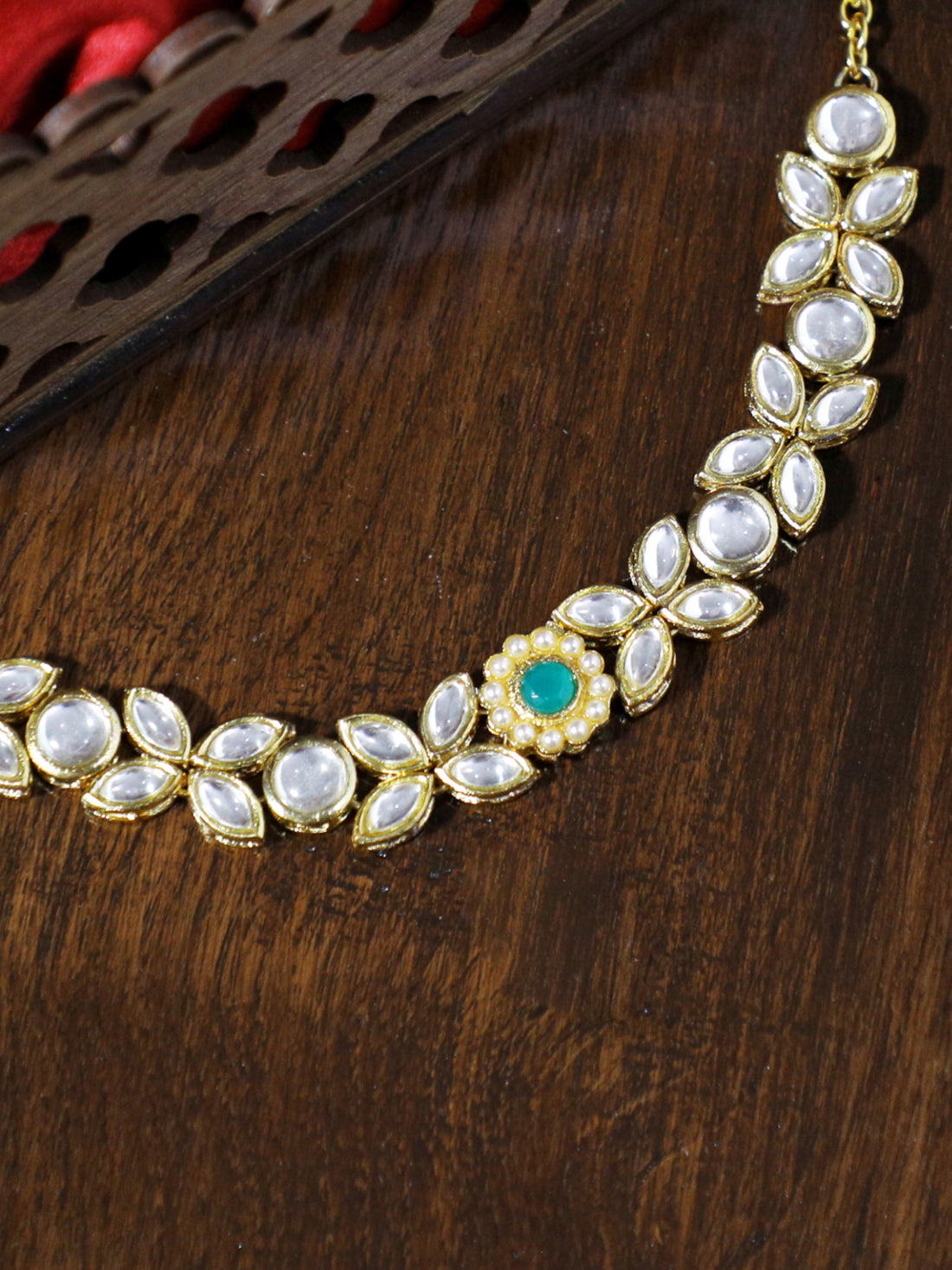 Traditional Gold Plated Green Beads Kundan Maangtikka for Women