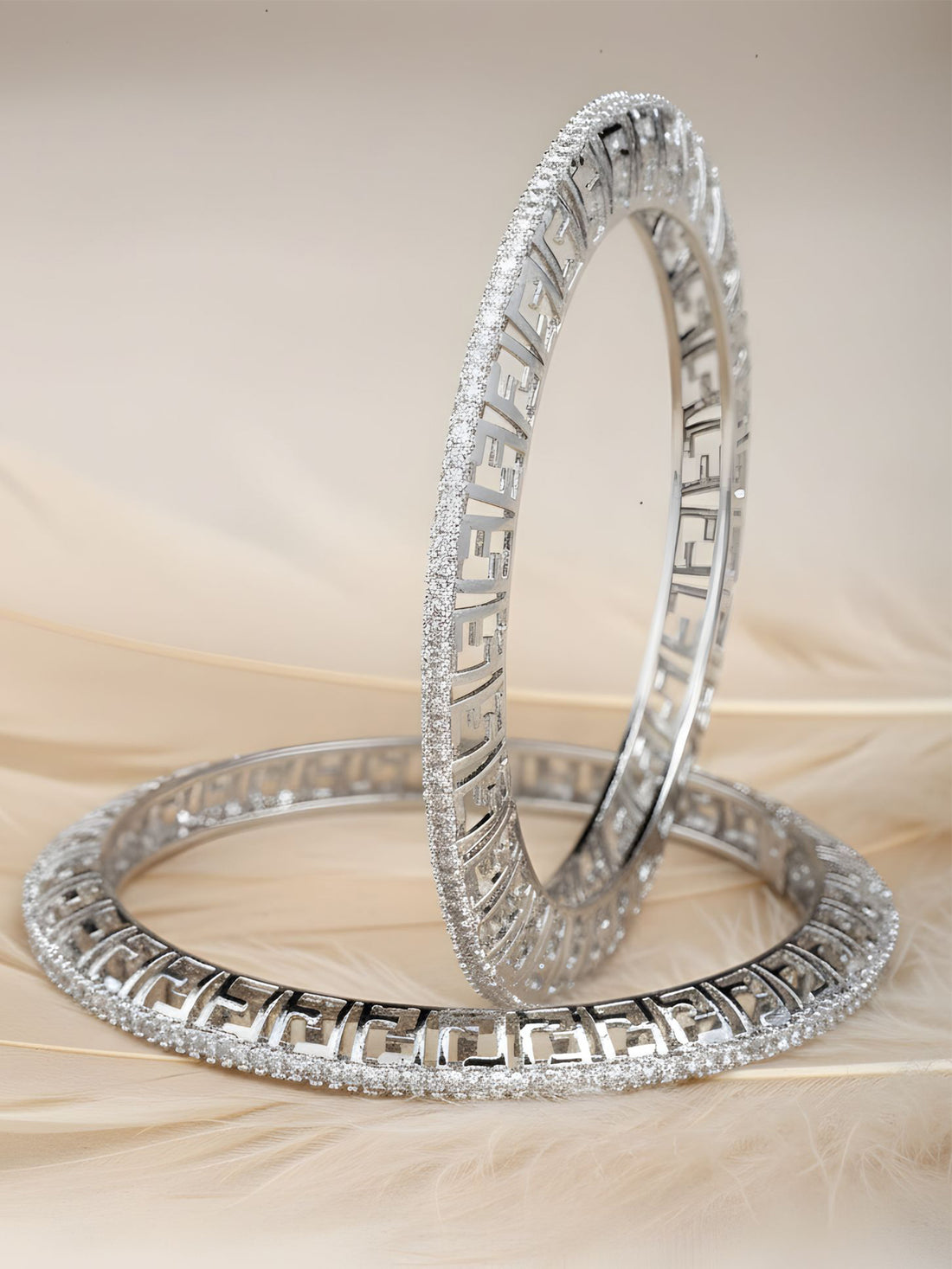 Karatcart AD Studded Set of 2 Silver-Plated Bangles for Women