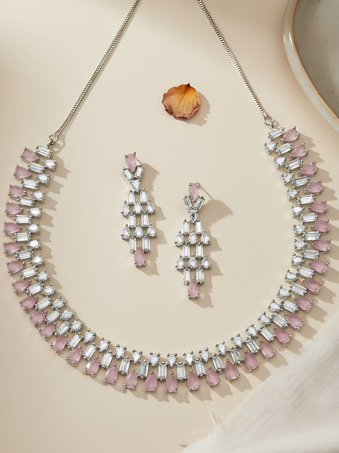 Karatcart Silver Tone Pink Cubic Zirconia Studded Necklace Set