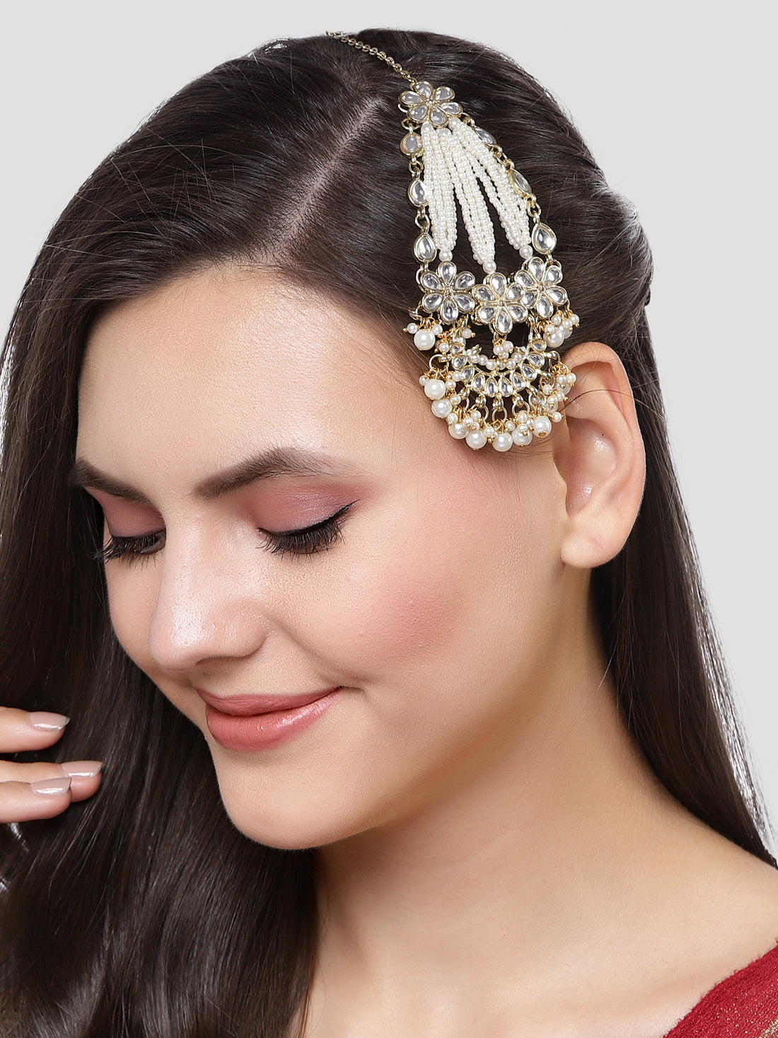 Karatcart Gold Plated Pearl Beads Studded Floral Design Kundan Passa for Women