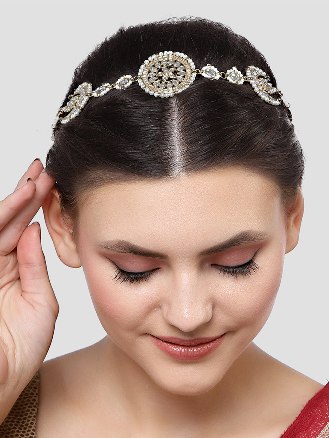 Karatcart Gold Plated Pearl Studded Kundan Passa for Women. Our products are designed with high-quality...