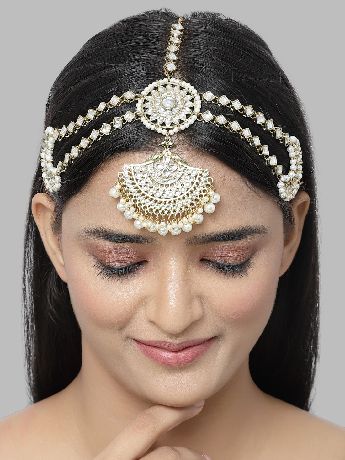 Karatcart Gold-Plated Moon Design Pearl and Kundan Mathapatti for Women
