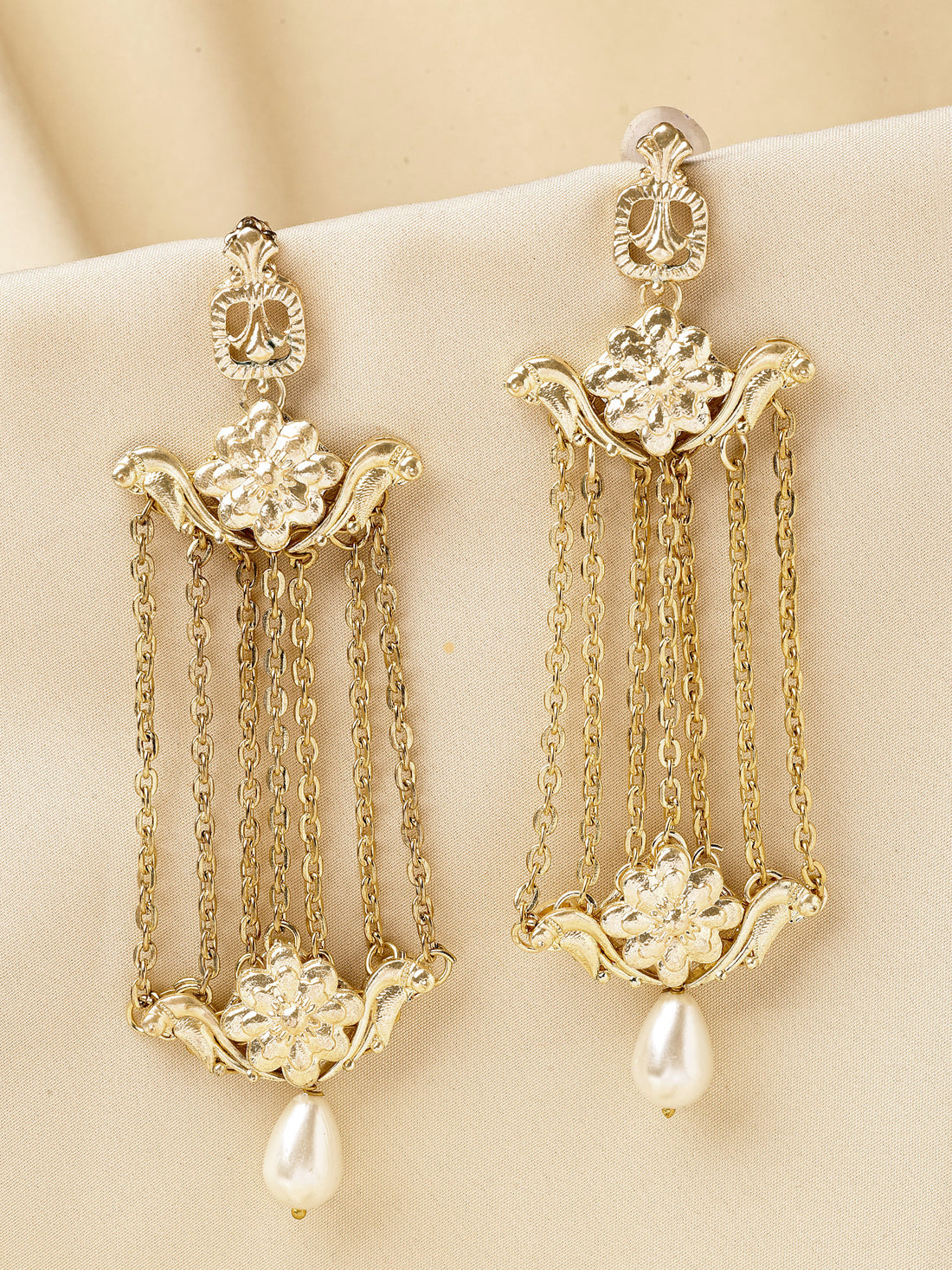 Karatcart Ethnic Gold-Plated Long Chain Golden Tassels Dangler Earrings for Women