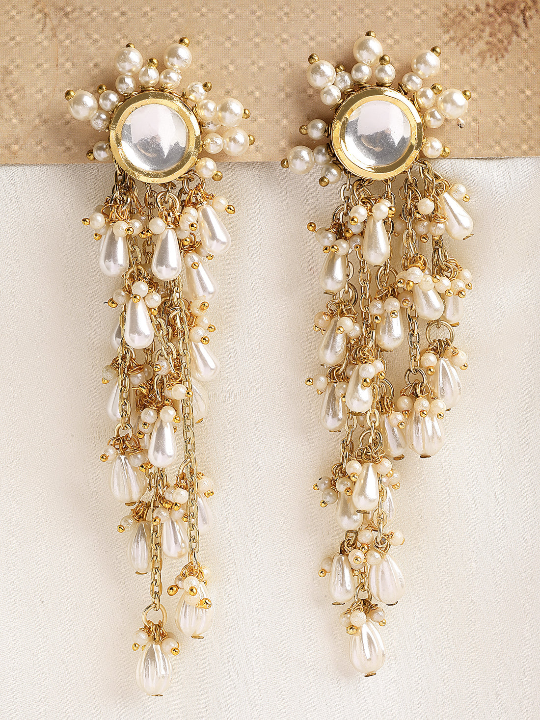 KARATCART Gold-Plated Traditional Pearl Beaded Kundan Kaanchain Earrings for Women