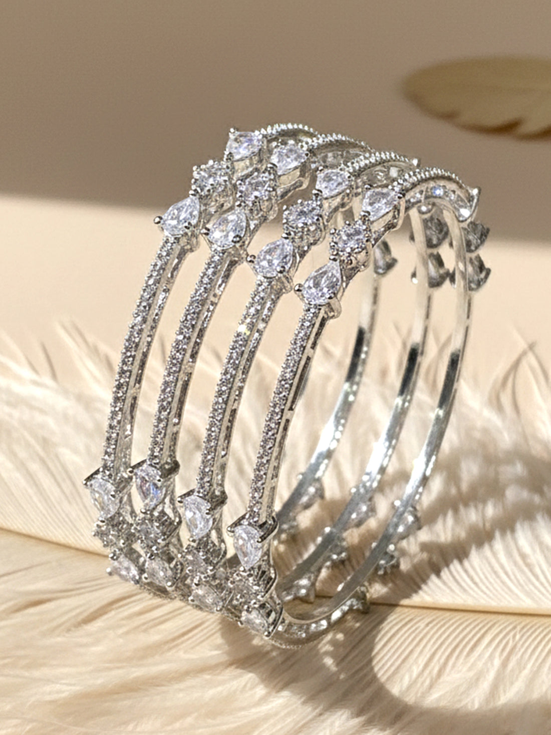 KARATCART Classic Set of 4 Silver Plated White American Diamond Bangles for Women