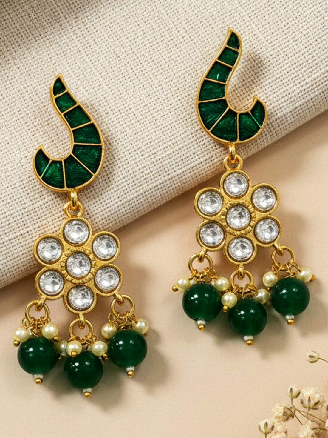 KARATCART Designer Gold-Plated Green Enamel Kundan Dangler Earrings for Women