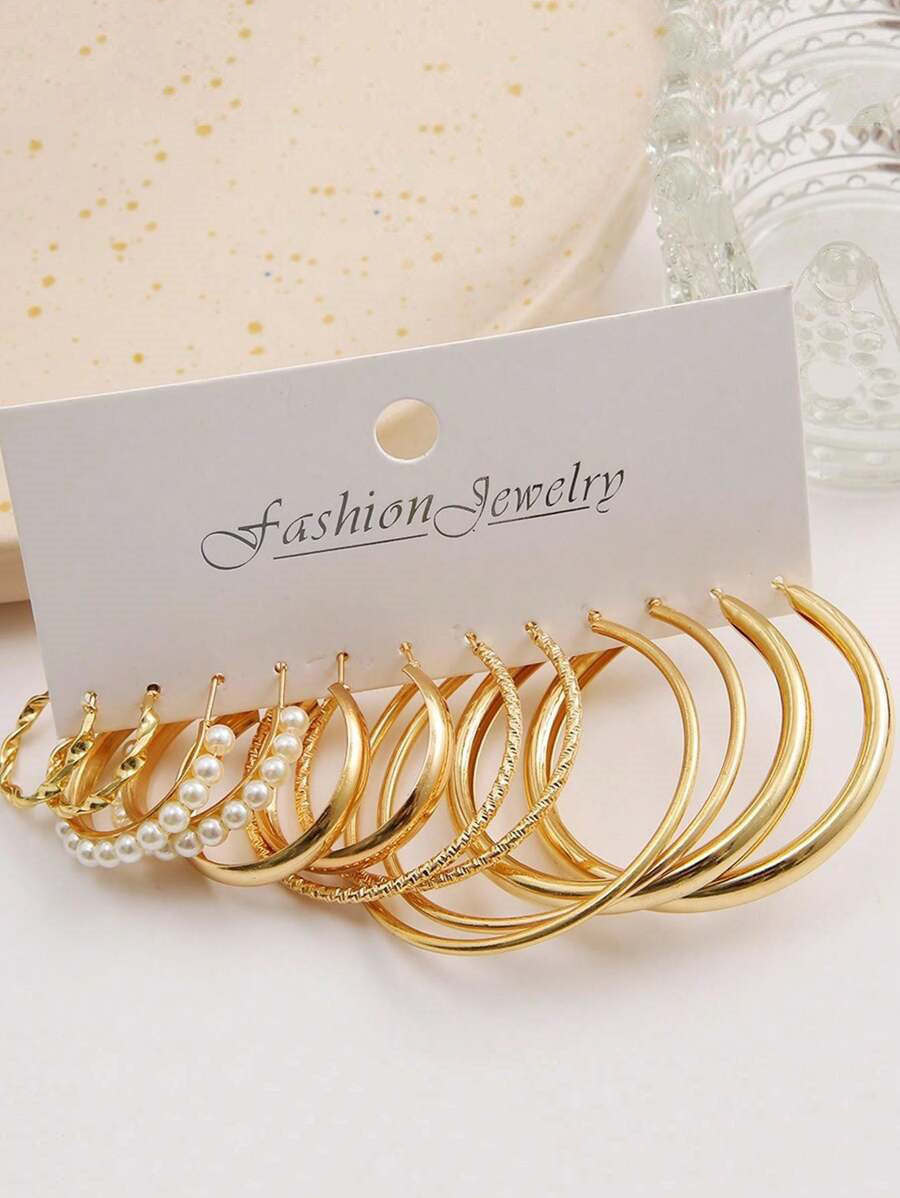 Bohey by KARATCART Combo of 6 Gold Tone Fashion Hoop Earrings for Women