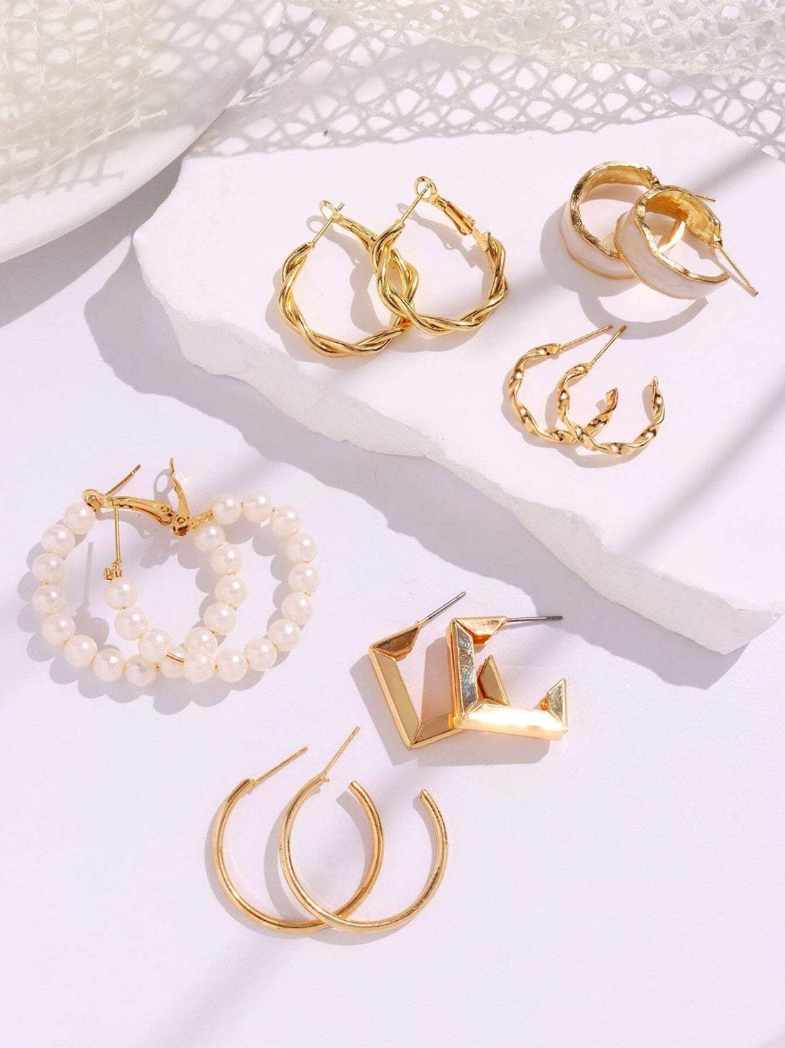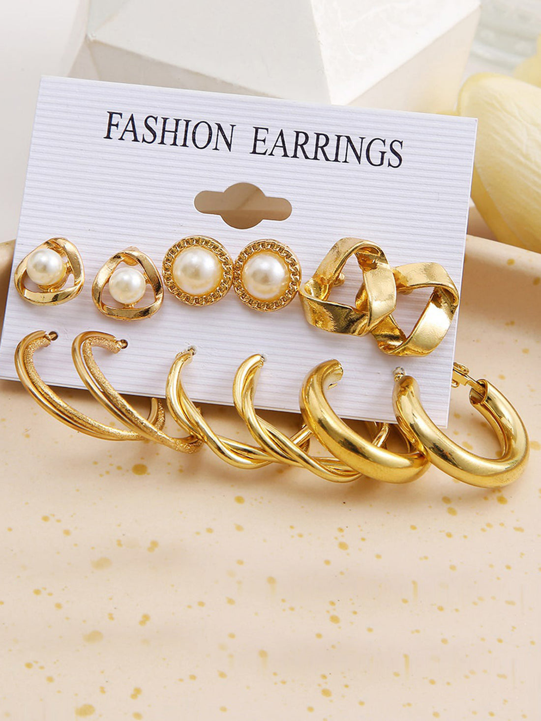 Bohey by KARATCART Fashion White Hoops Gold Plated Combo of 6 Pairs Earring Set for Women