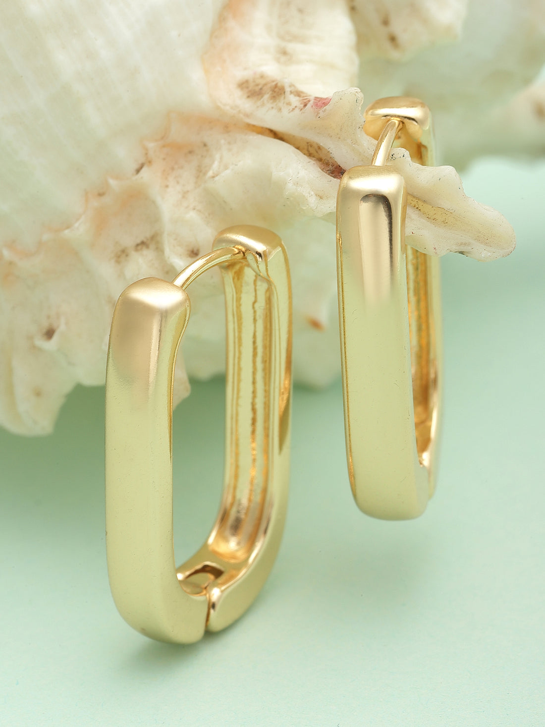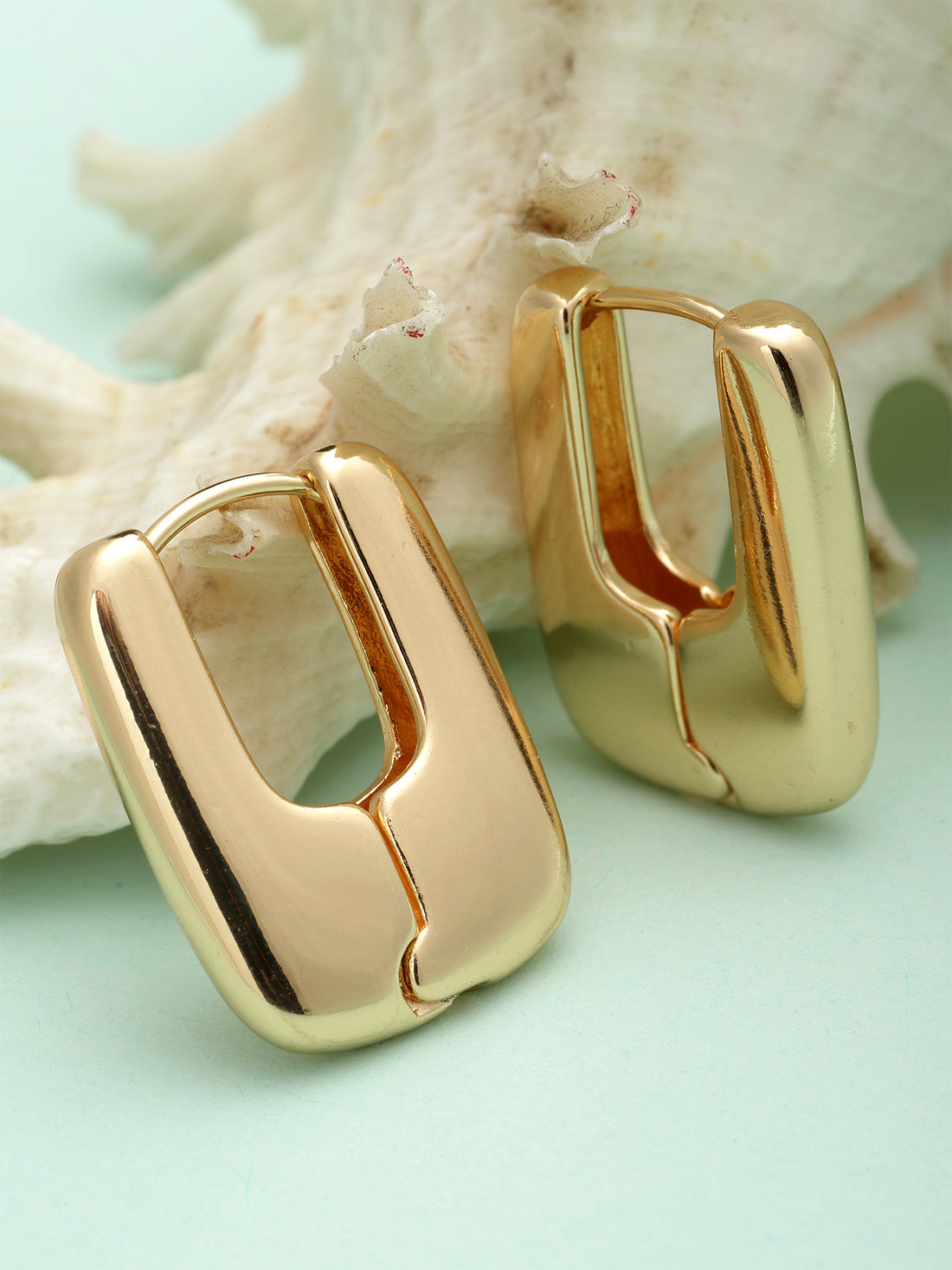 Bohey by KARATCART Gold Tone Square Shape Huggies Earrings for Women