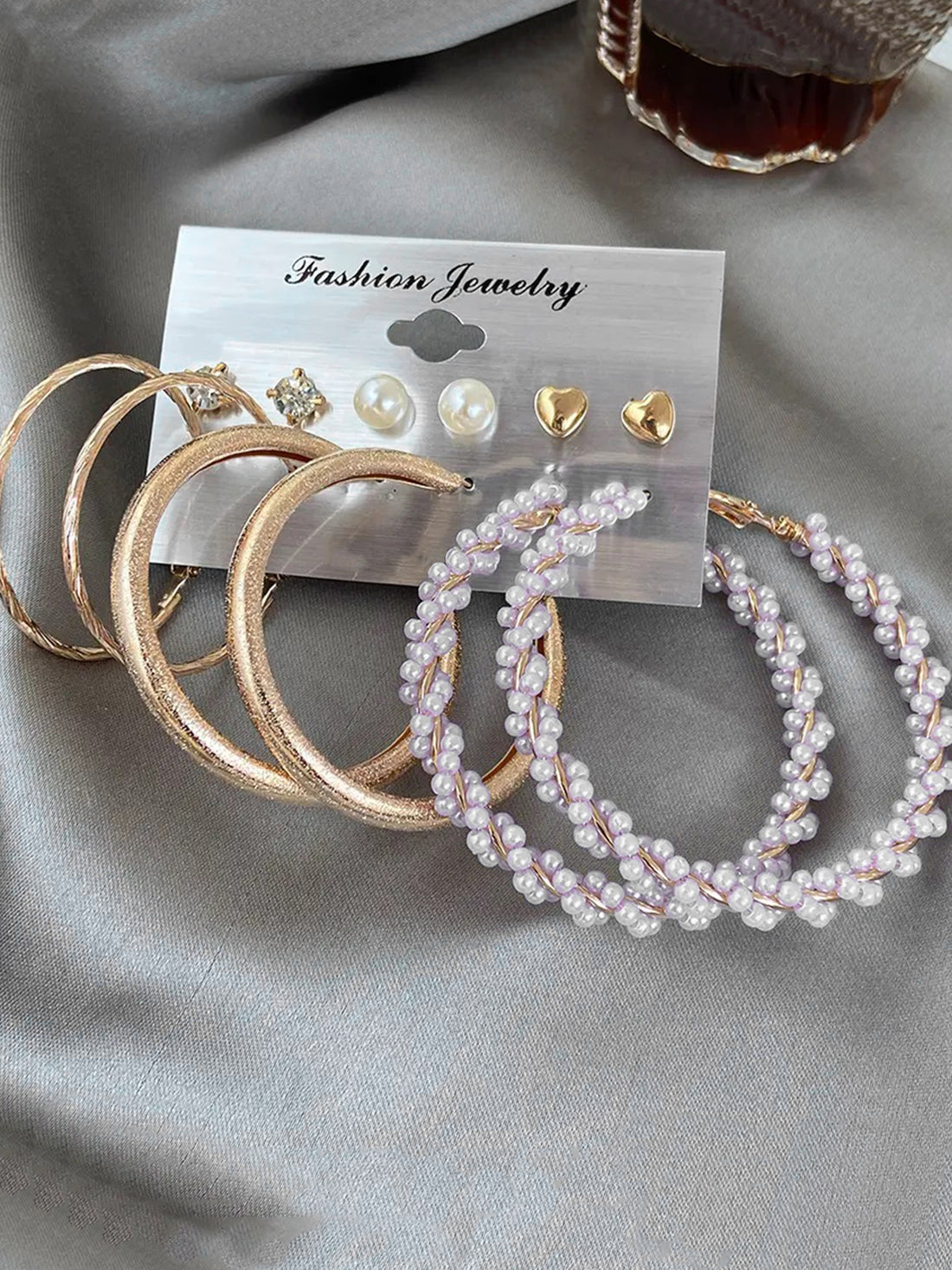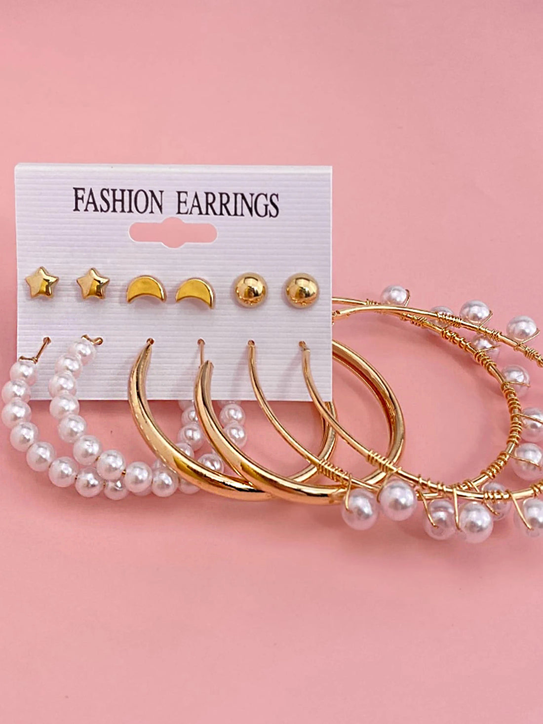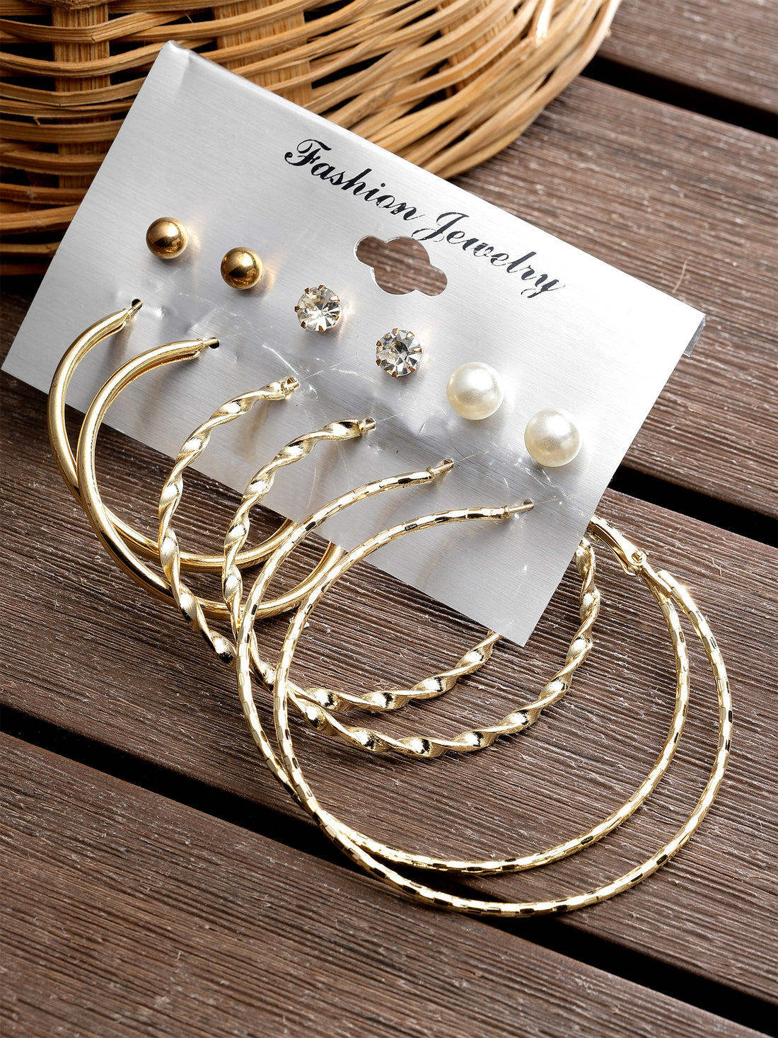 Bohey by KARATCART Combo of 6 Gold Tone Fashion Pearl Hoop Stud Earrings for Women & Girls
