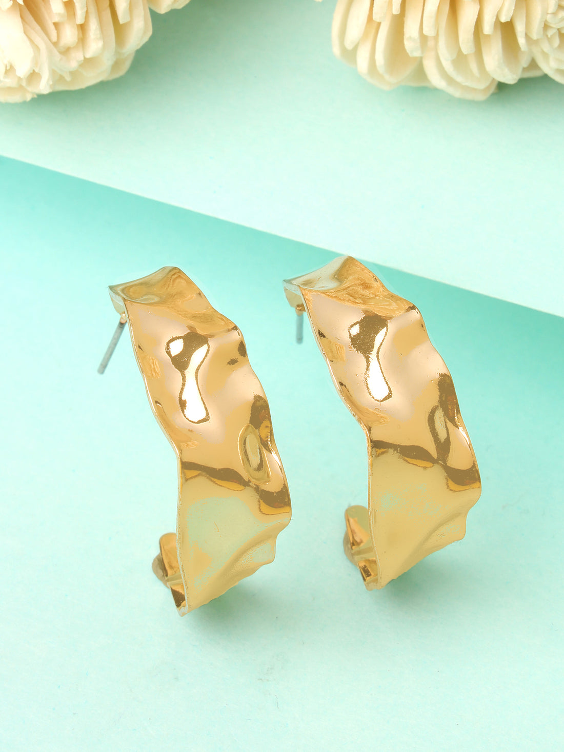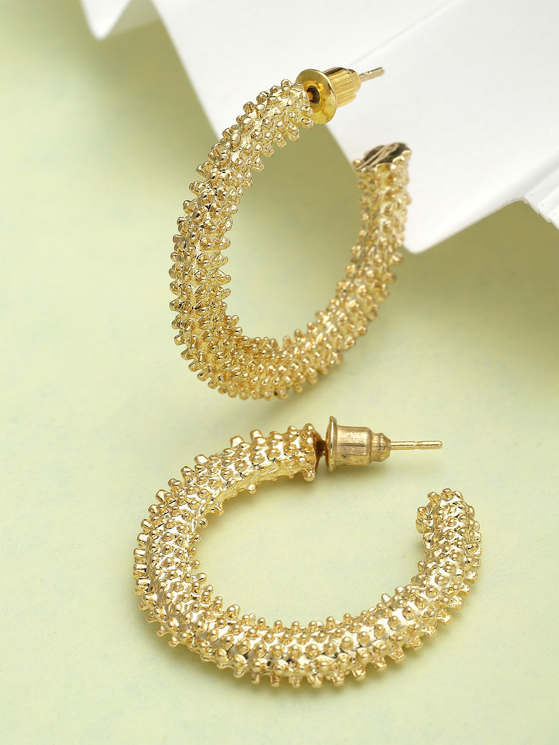 Bohey by KARATCART Gold Plated Textured Huggies Earrings for Women