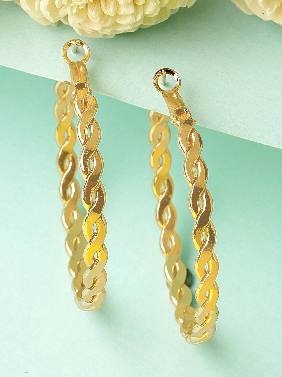Bohey by KARATCART Gold Tone Twisted Half Hoop Earrings for Women