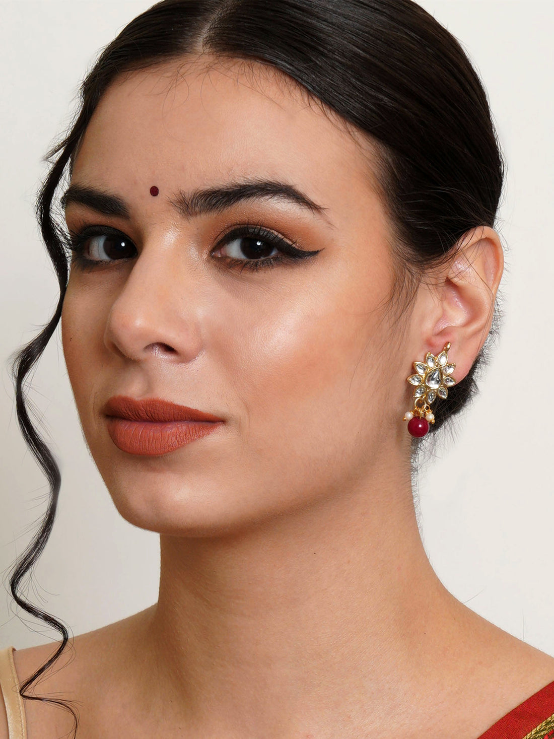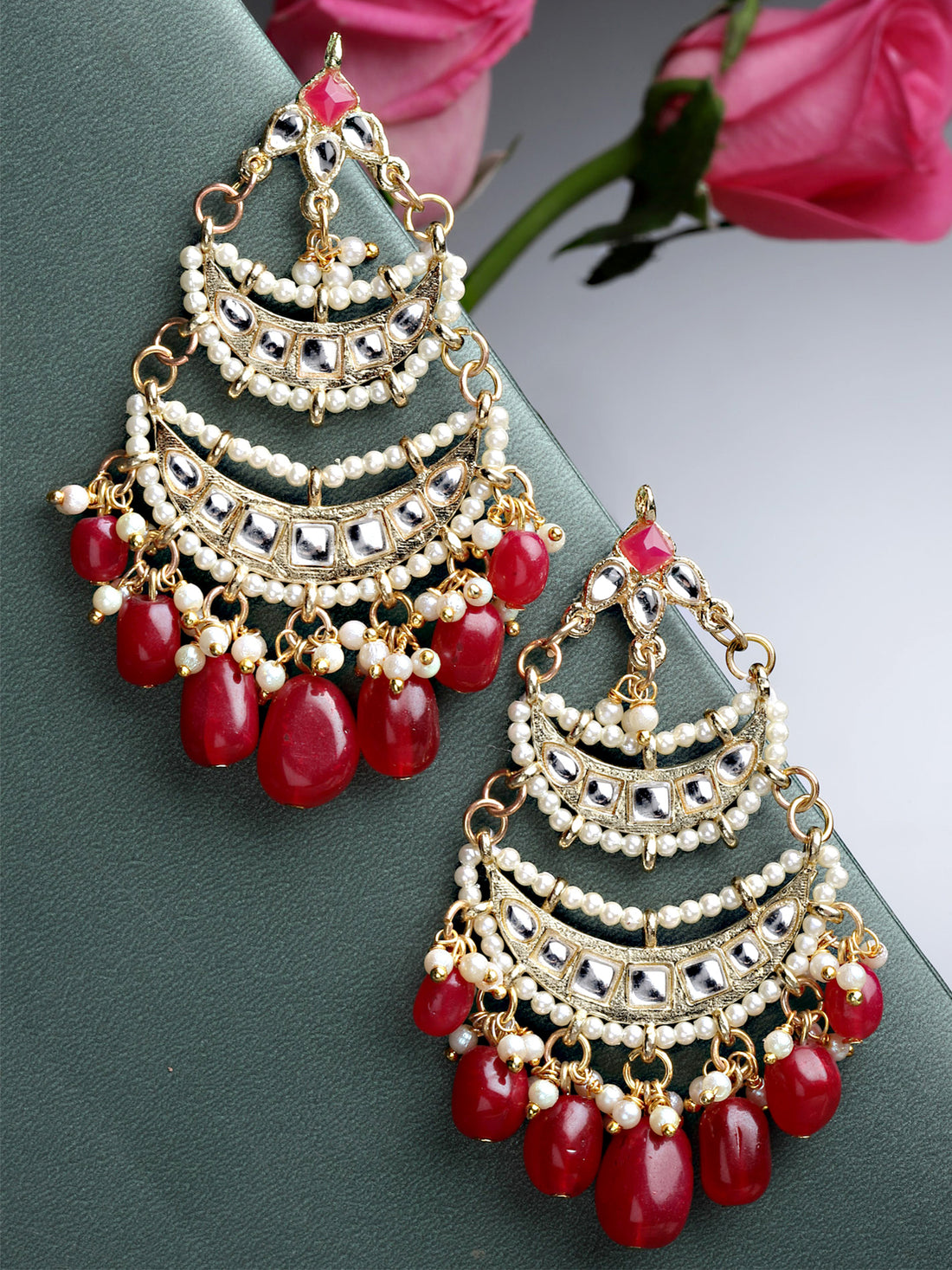Karatcart Gold Plated Red Tumble Kundan Chandbali Earrings for Women