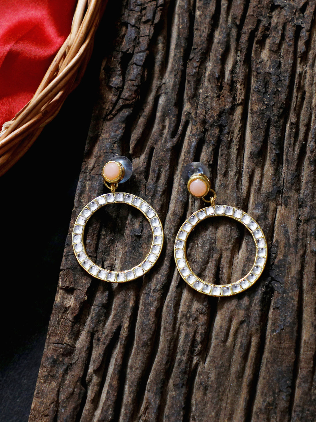 Gold-Tone Kundan Hoop Earrings with Embedded Peach Stone. This set of earrings can be best...