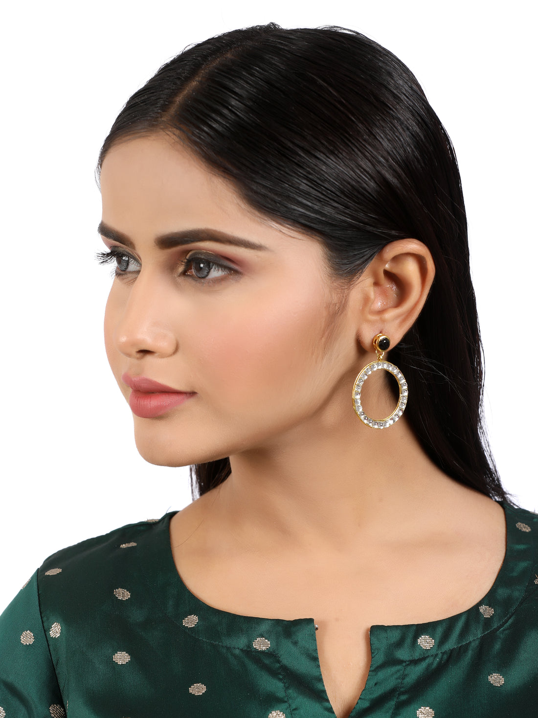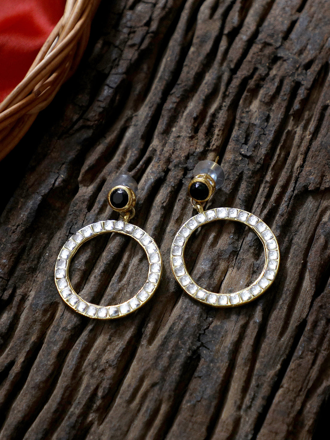 Gold-Tone Kundan Hoop Earrings with Embedded Black Stone. This set of earrings can be best...