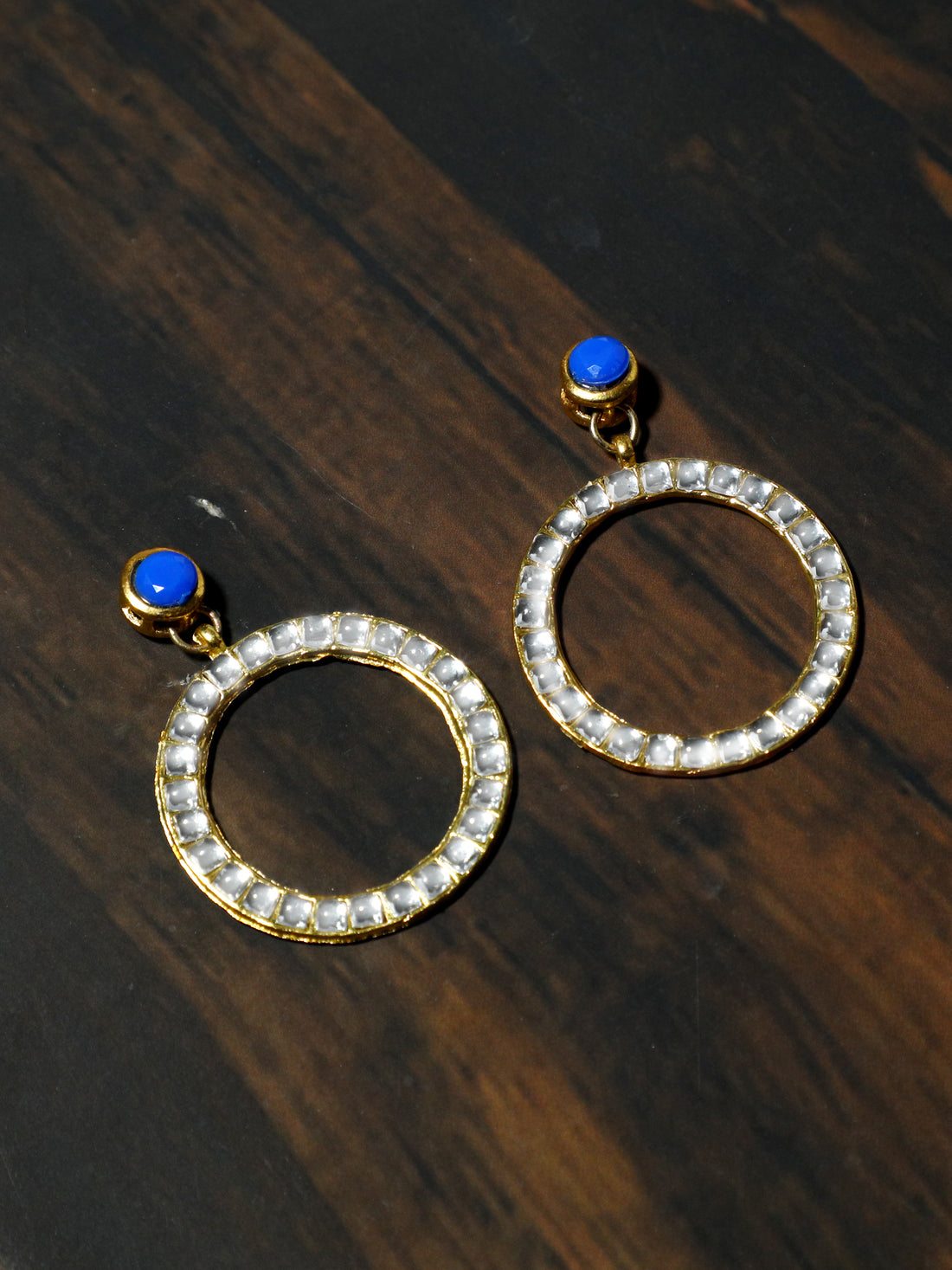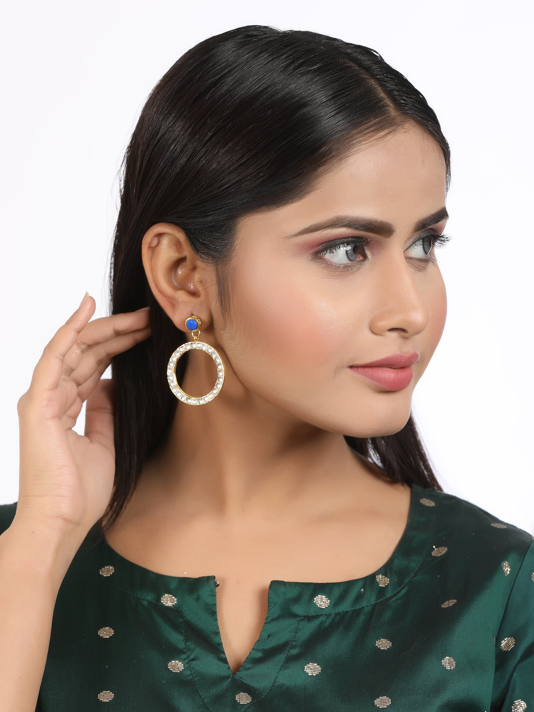 Gold-Tone Kundan Hoop Earrings with Embedded Blue Stone. This set of earrings can be best...