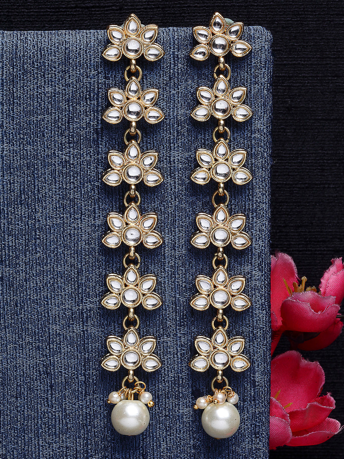 Karatcart Floral Shaped Embellished Kundan Studded Drop Earrings for Women. It's Five Layer Micro Gold...