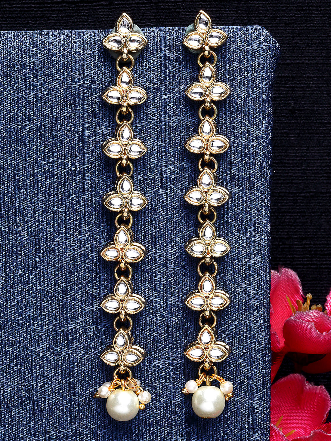 Gold Plated Mint Green Beads White Kundan Dangler Earrings for Women. It's Five Layer Micro Gold...