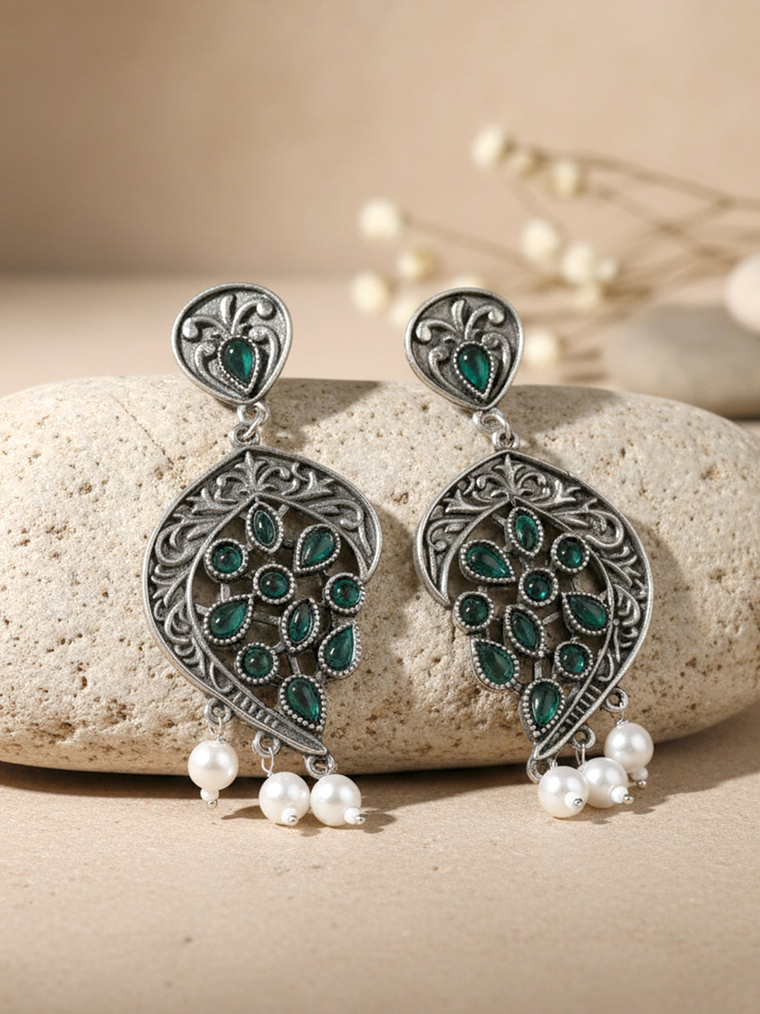 Karatcart Oxidised Silver Green Stone Drop Earring for Women