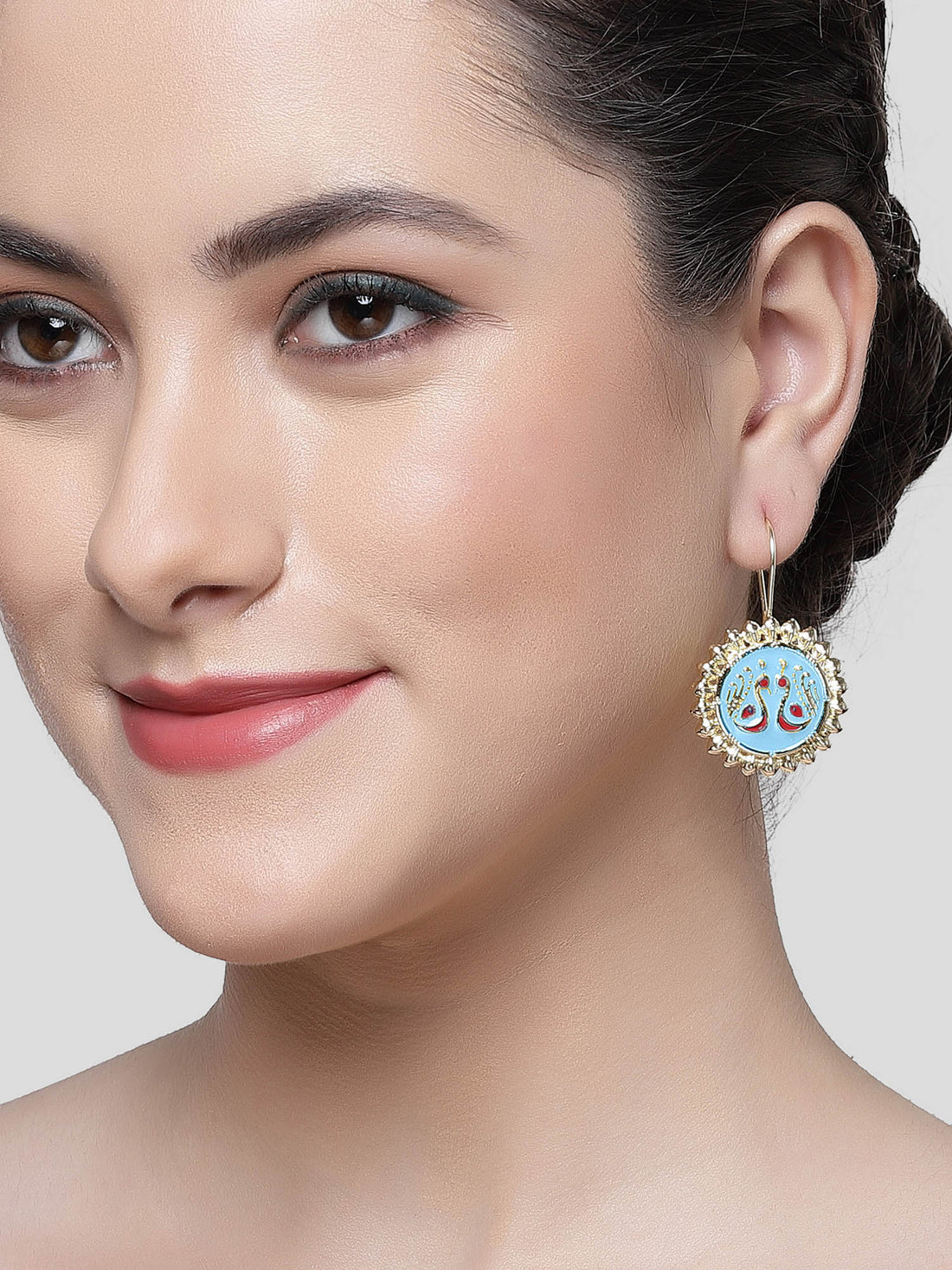 Karatcart Gold Plated Light Blue Meena Kundan Dangler Earrings for Women
