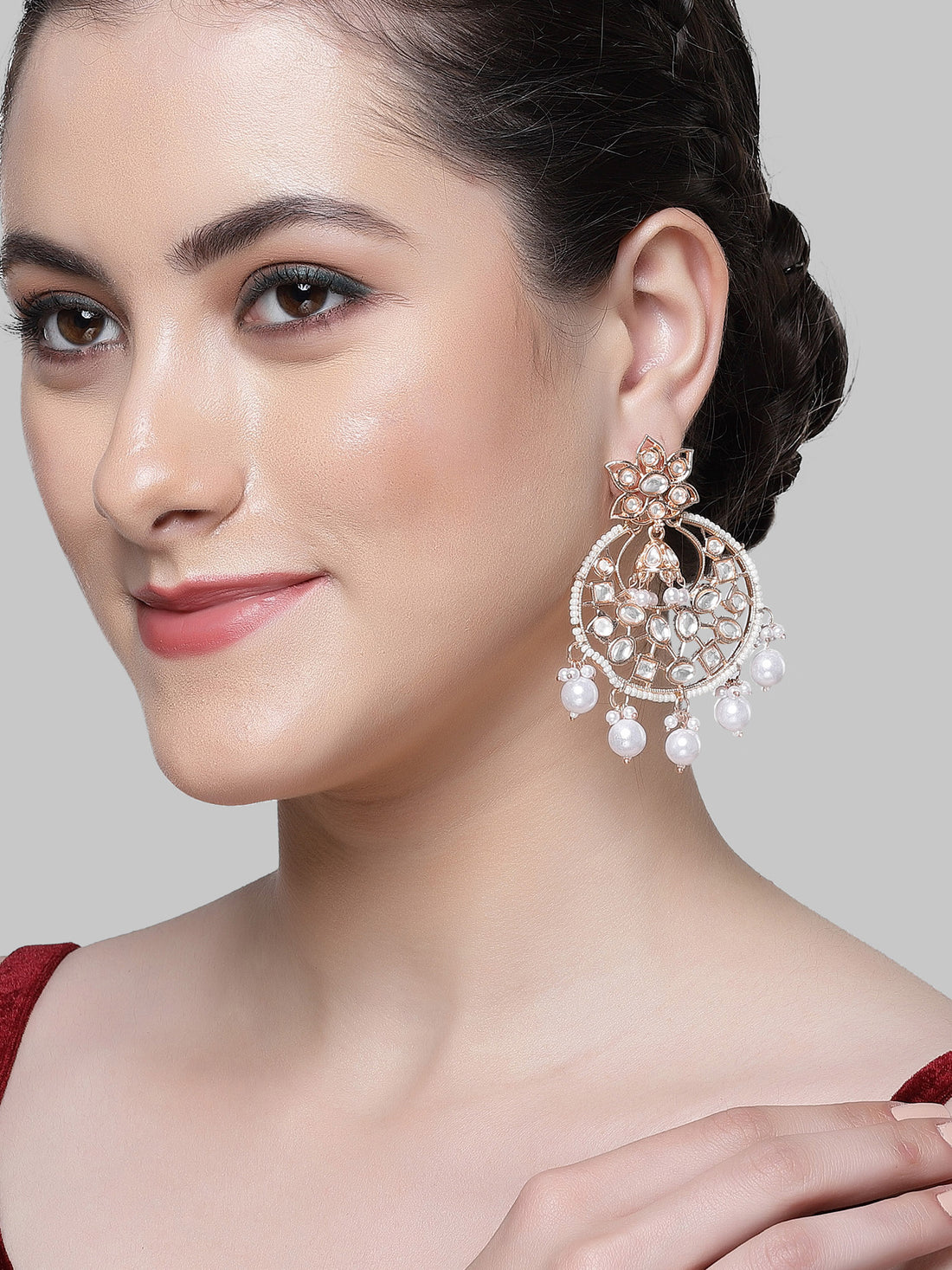 Karatcart Rose Gold Plated Pearl & Kundan Studded Dangler Earrings for Women