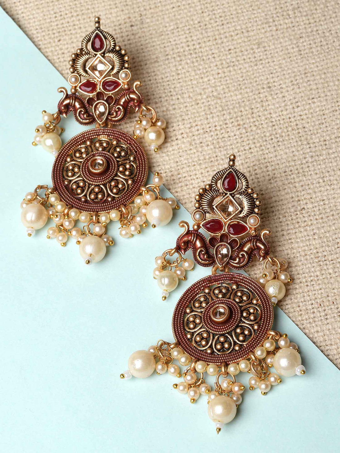 Karatcart Gold Plated Kundan and Pearl Studded Dangler Earrings for Women