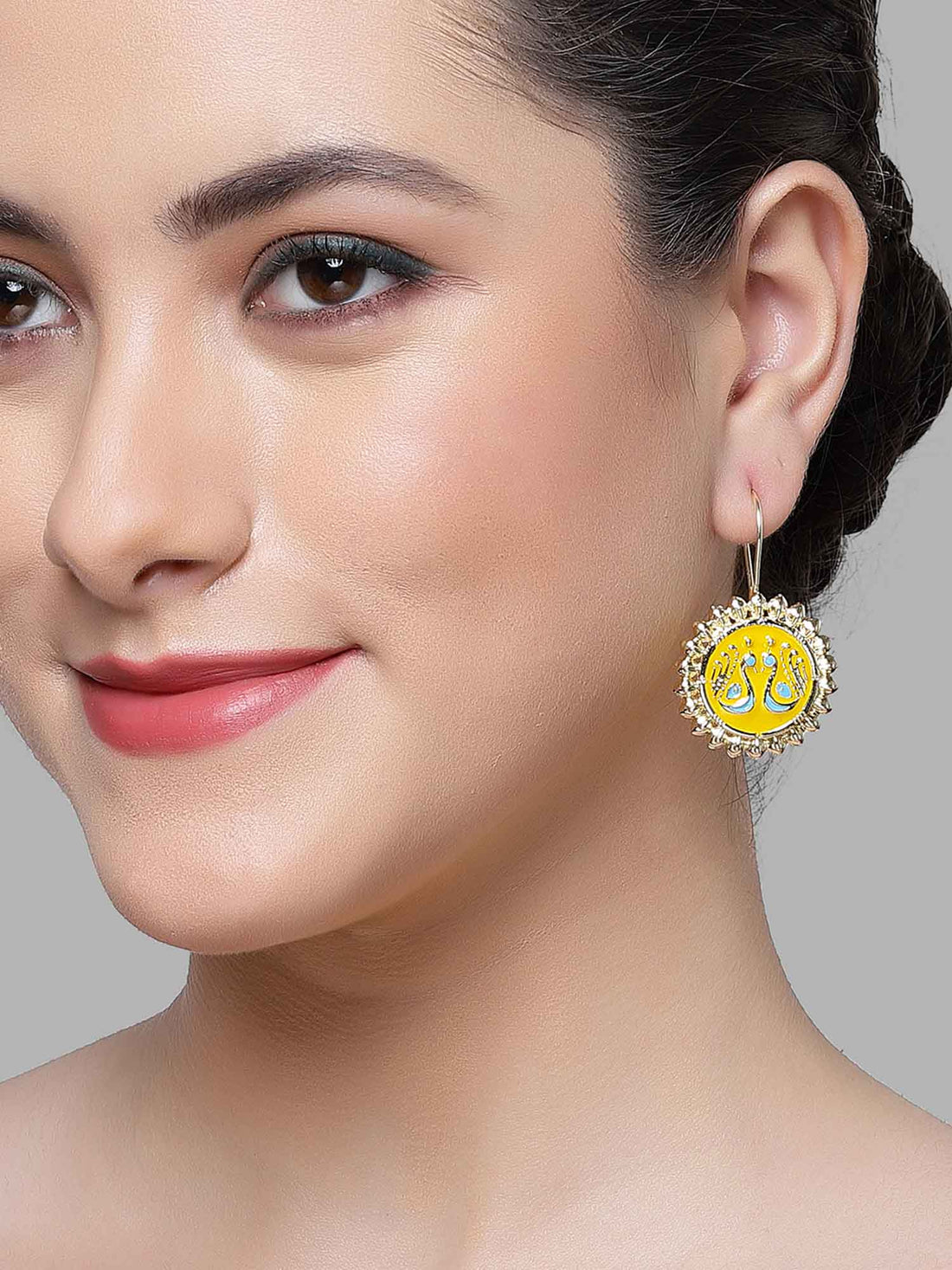 Karatcart Gold Plated Peacock Design Yellow Meena Drop Earrings for Women