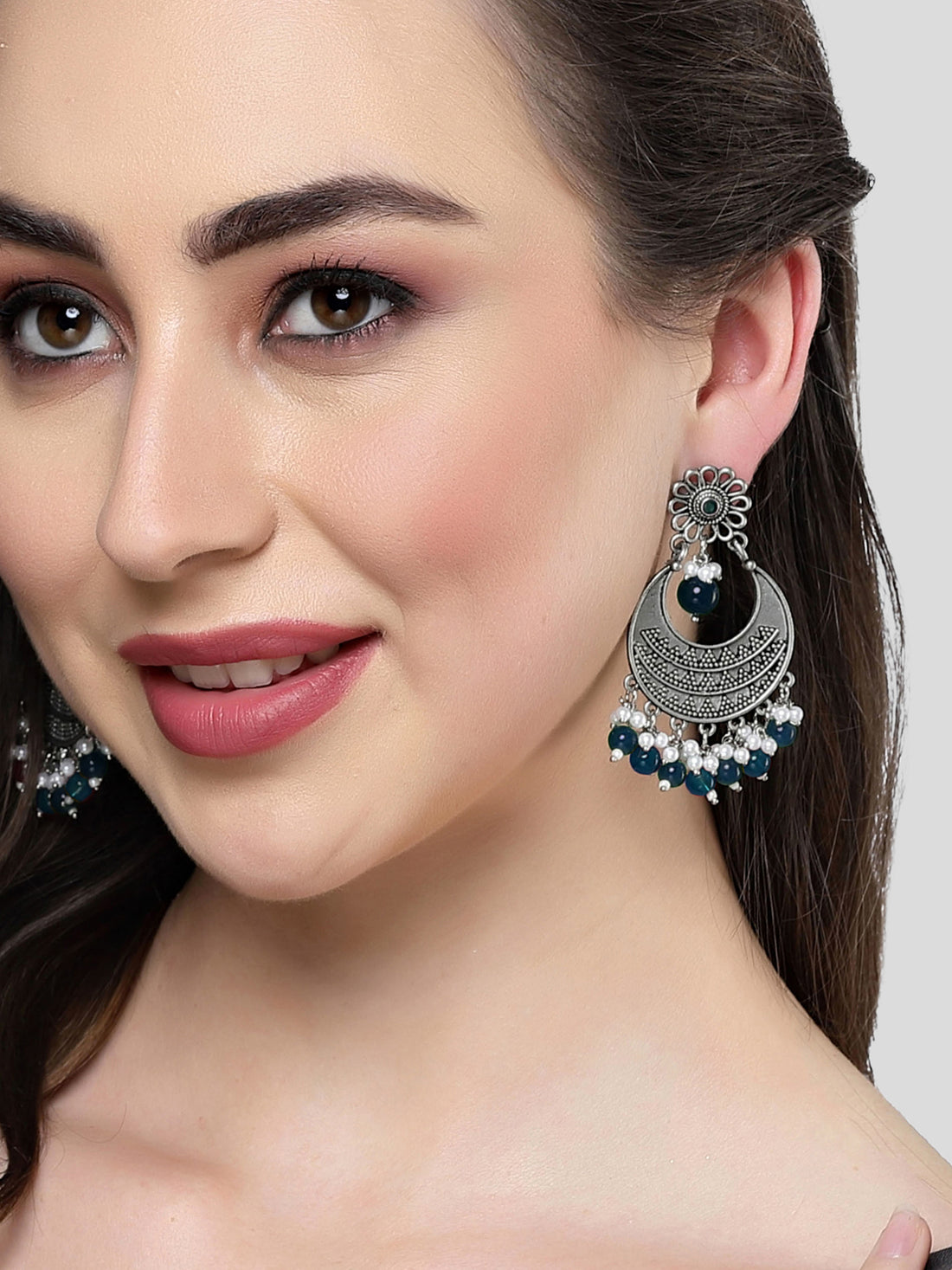 Karatcart Oxidised Silver Blue Beads Dangler Earrings for Women