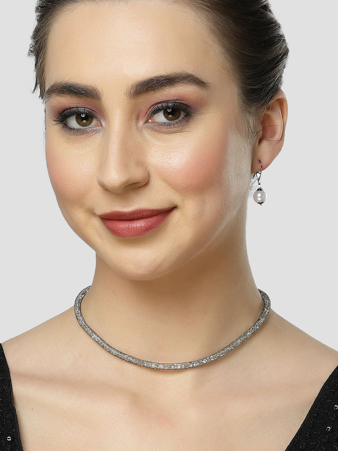Karatcart Black Tone Crystal Studded Necklace Set for Women