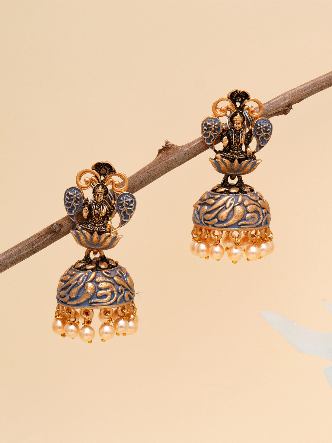 Karatcart Gold Plated Grey Meena Mata Laxmi Jhumki Earrings for Women