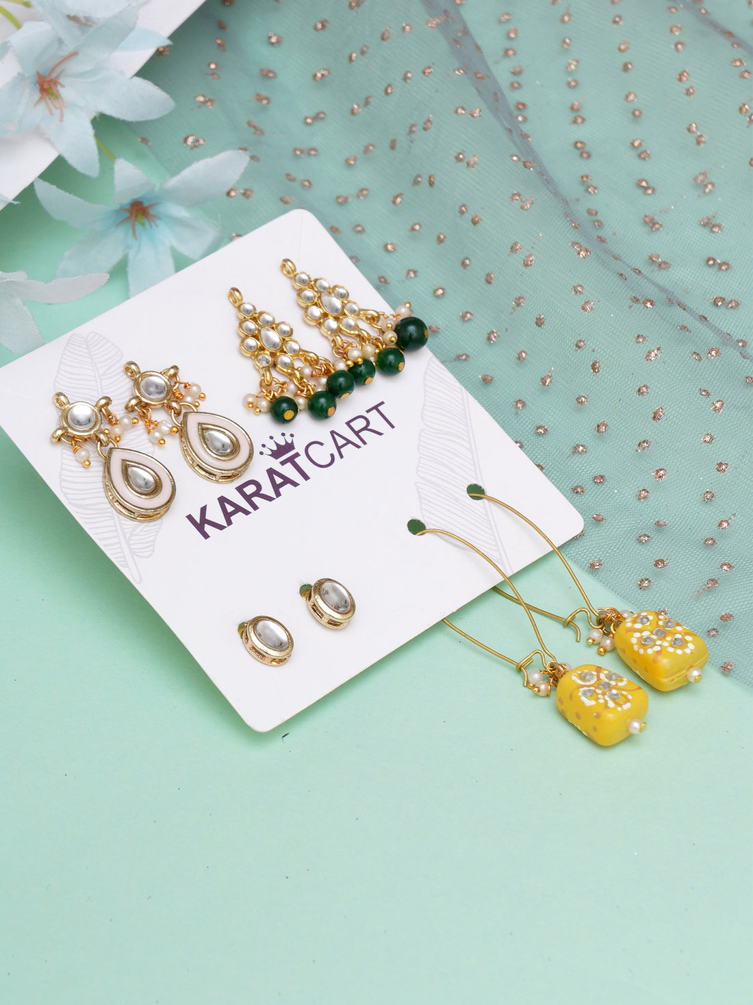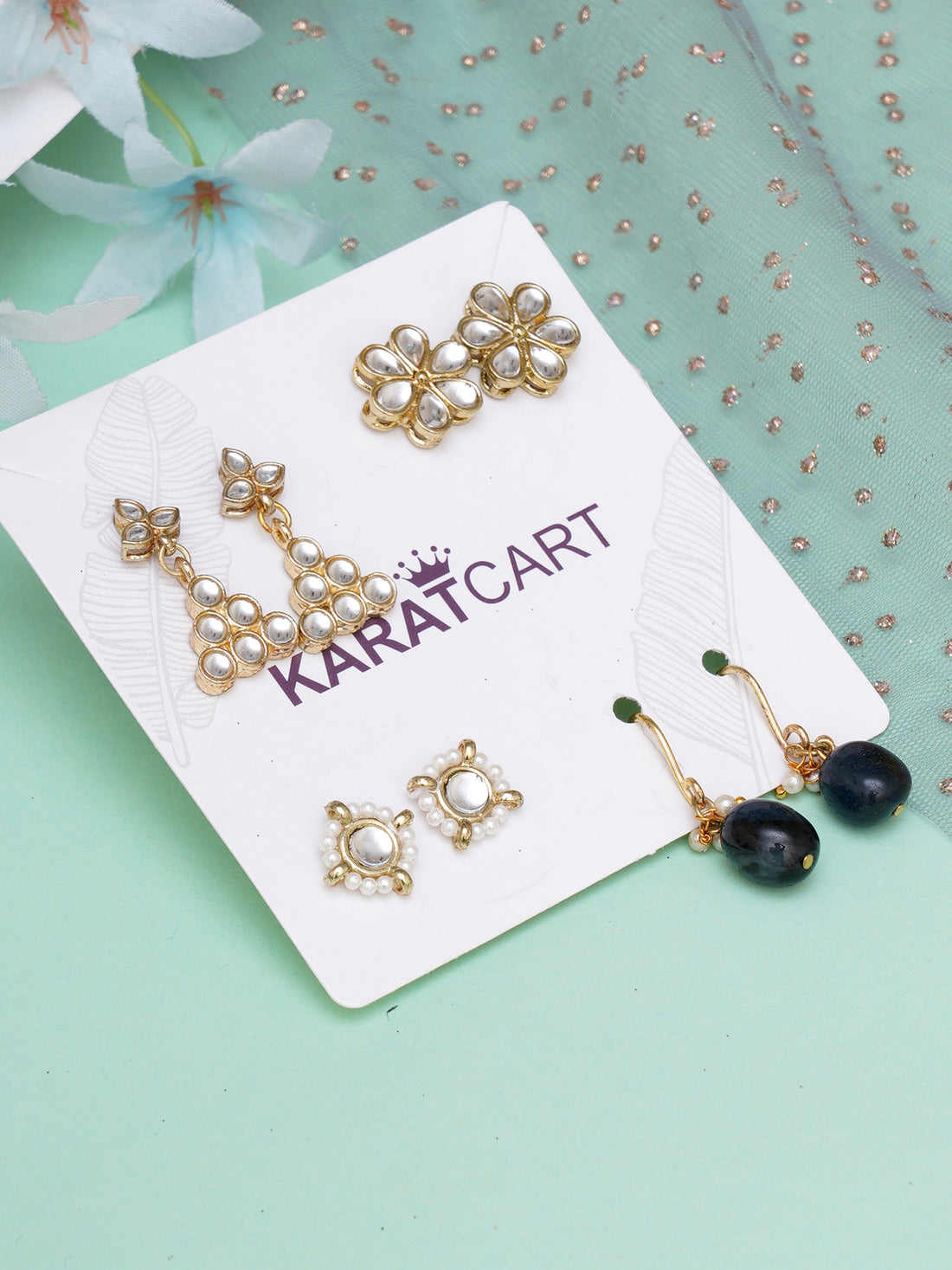 Karatcart Set of 3 Handcrafted Kundan Earrings Combo for Women