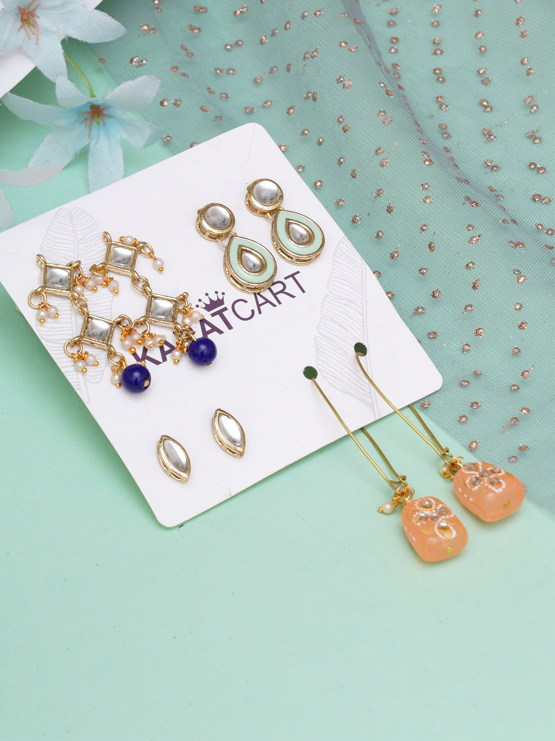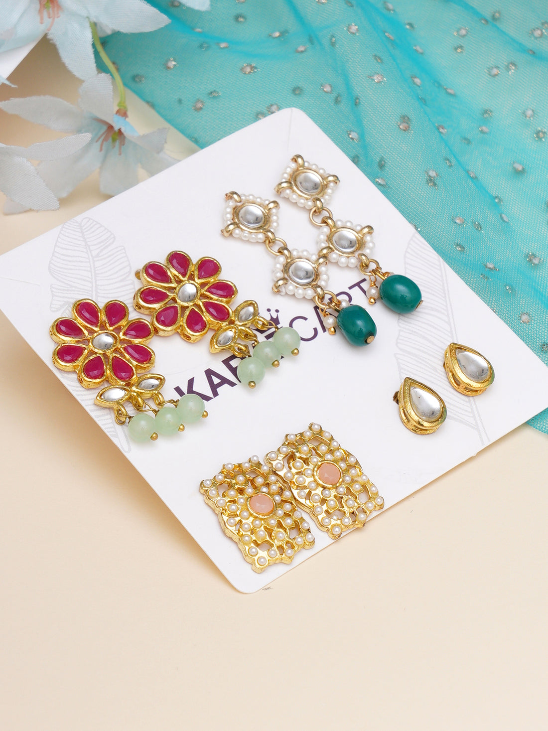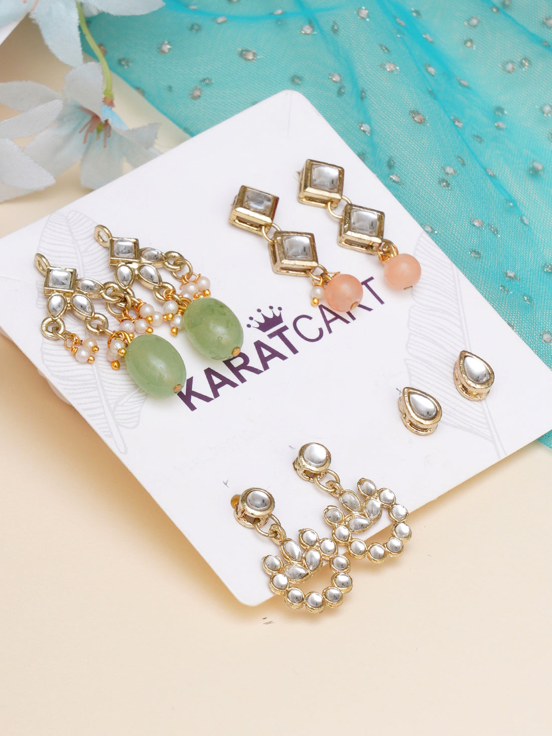 Karatcart Set of 4 Handcrafted Kundan Earrings Combo for Women