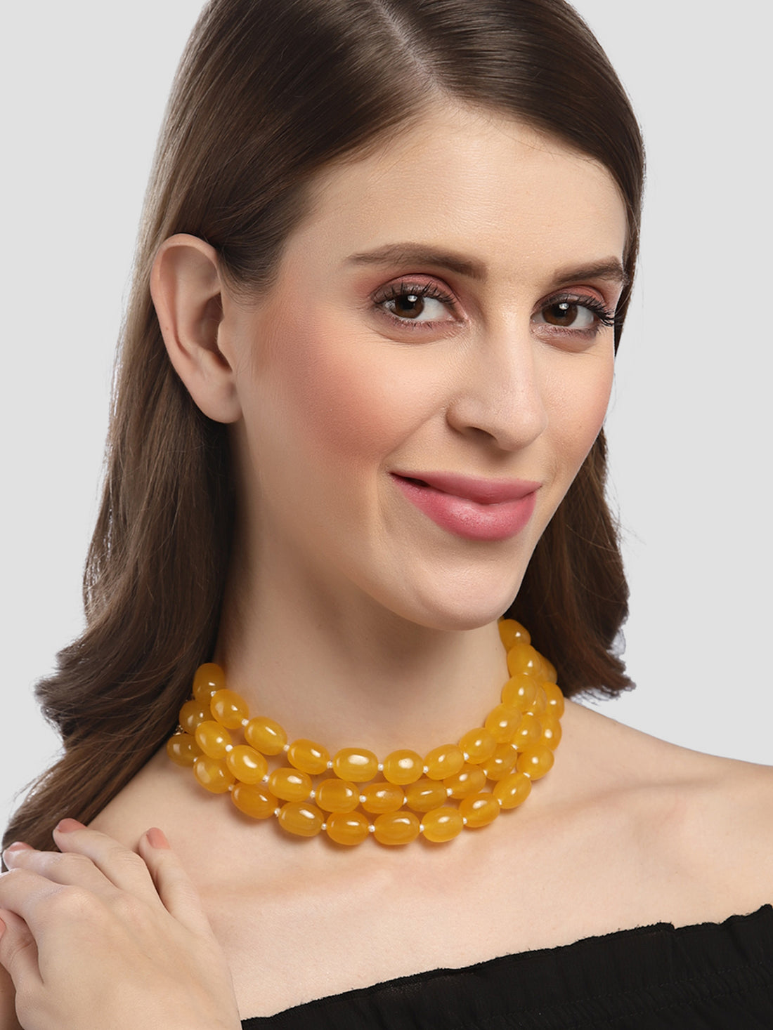 Karatcart Yellow Tumble Stone Studded Beaded Choker Necklace for Women