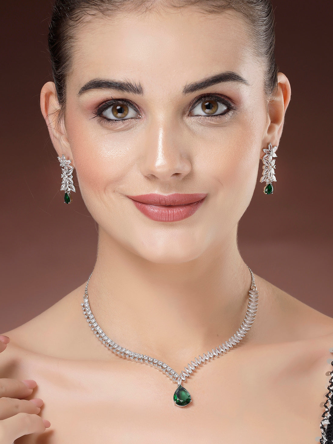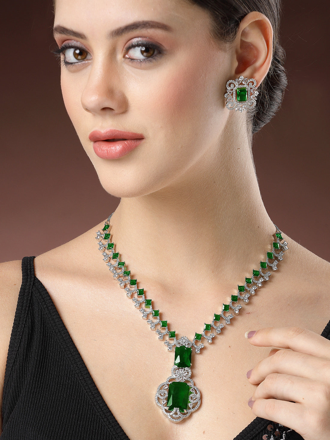 Karatcart Silver Tone Green Cubic Zirconia Studded Necklace Set for Women. Our products are designed...