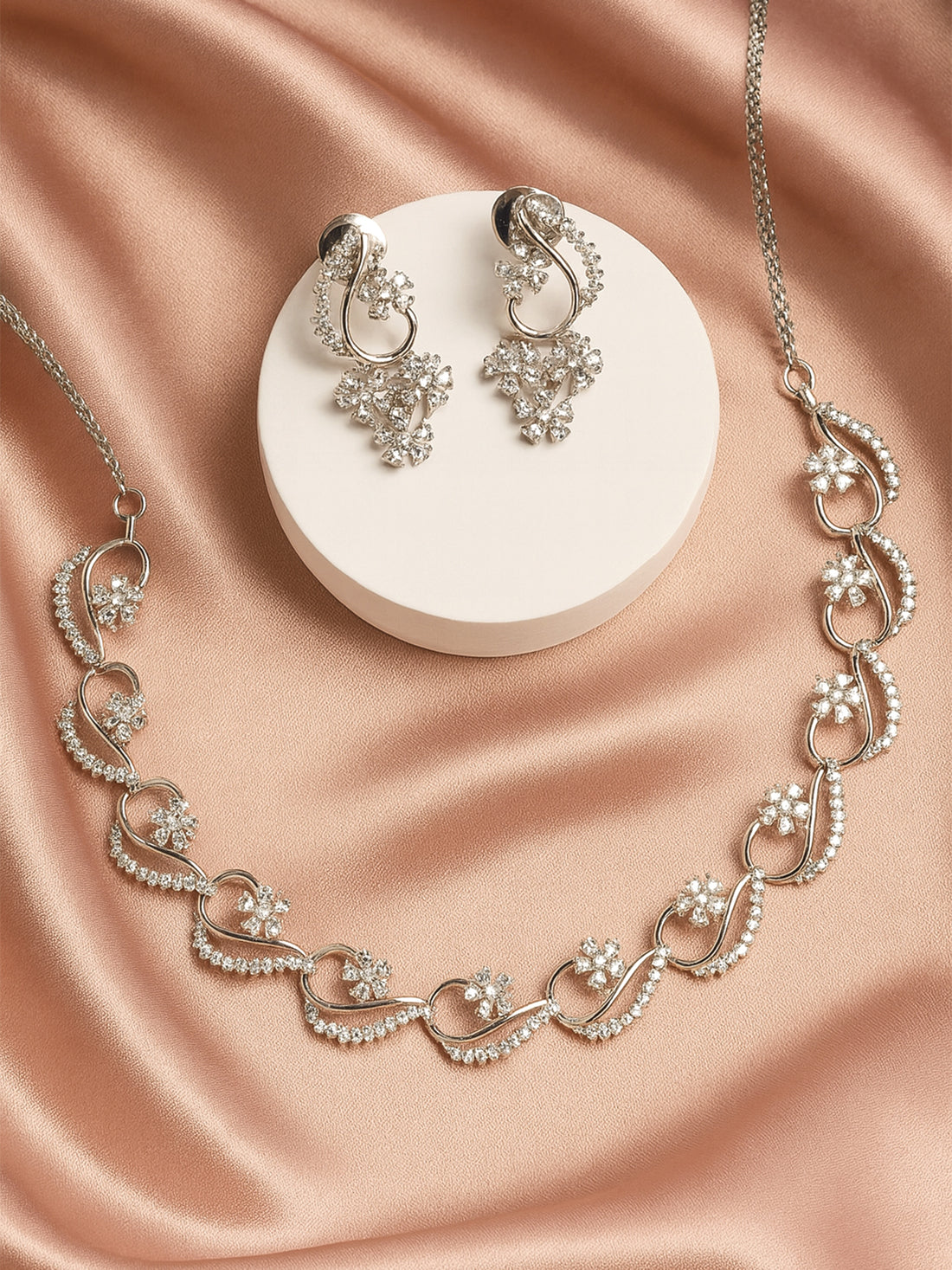 Karatcart Elegant Silver Plated AD Necklace Set for Women
