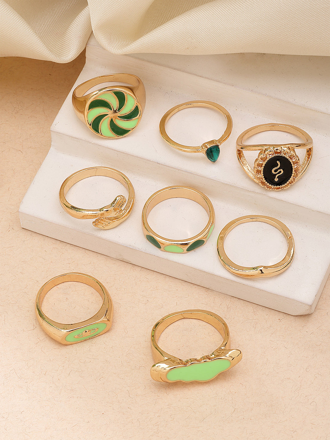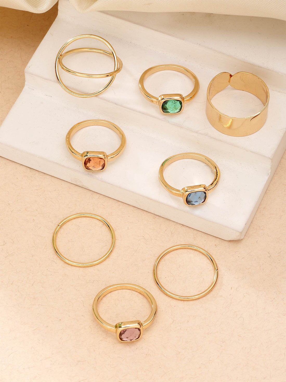 Bohey by KARATCART Set of 8 Gold-Plated Boho Midi Finger Rings for Women