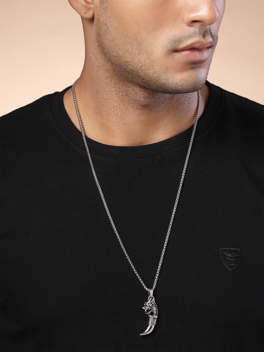 Bohey by KARATCART Silver Plated Dragon Tooth Metal Chain Pendant for Men