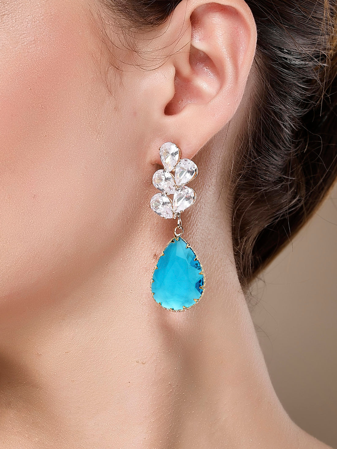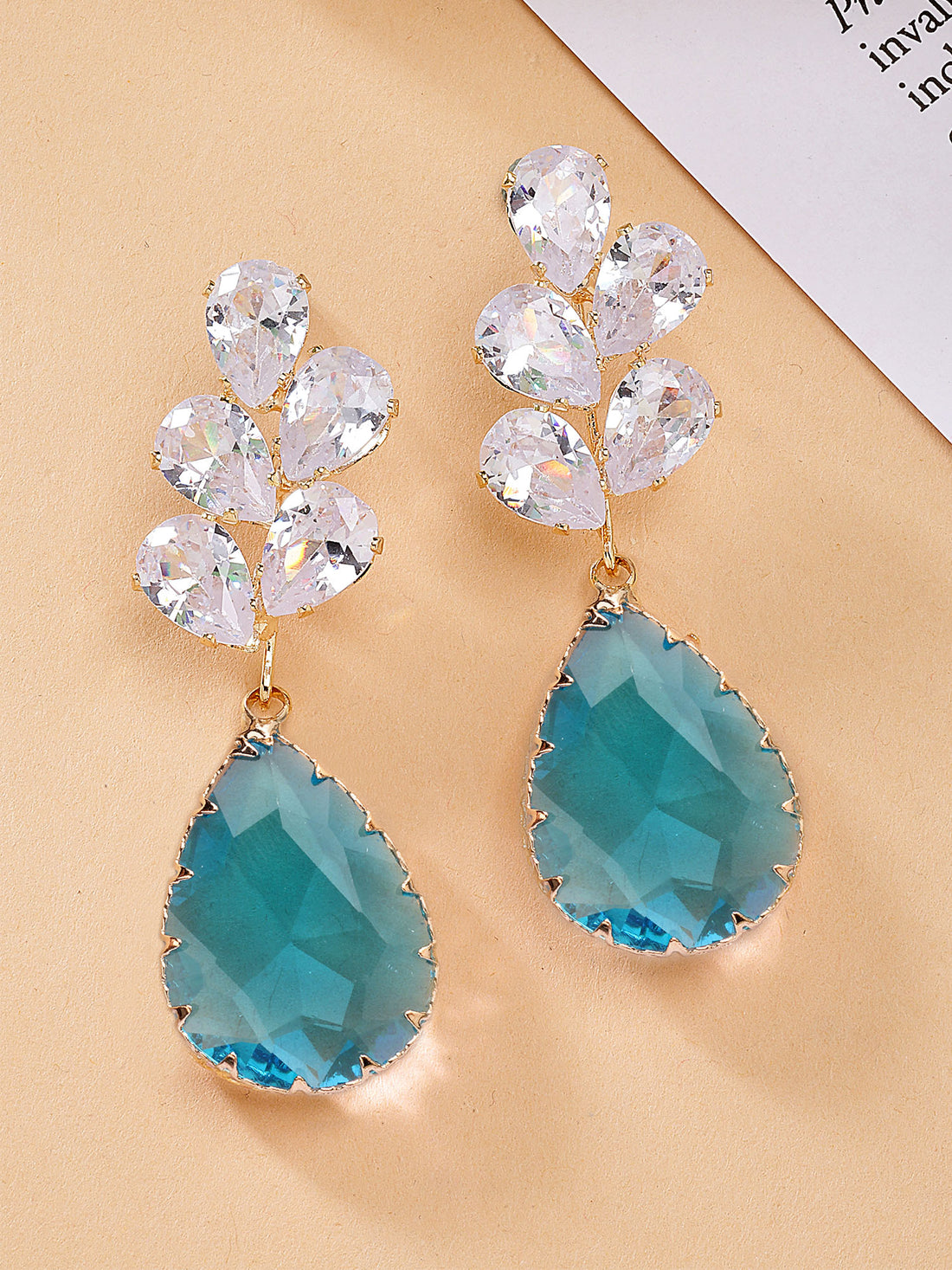 Bohey by KARATCART Gold-Plated Contemporary Light Blue Drop Earrings for Women