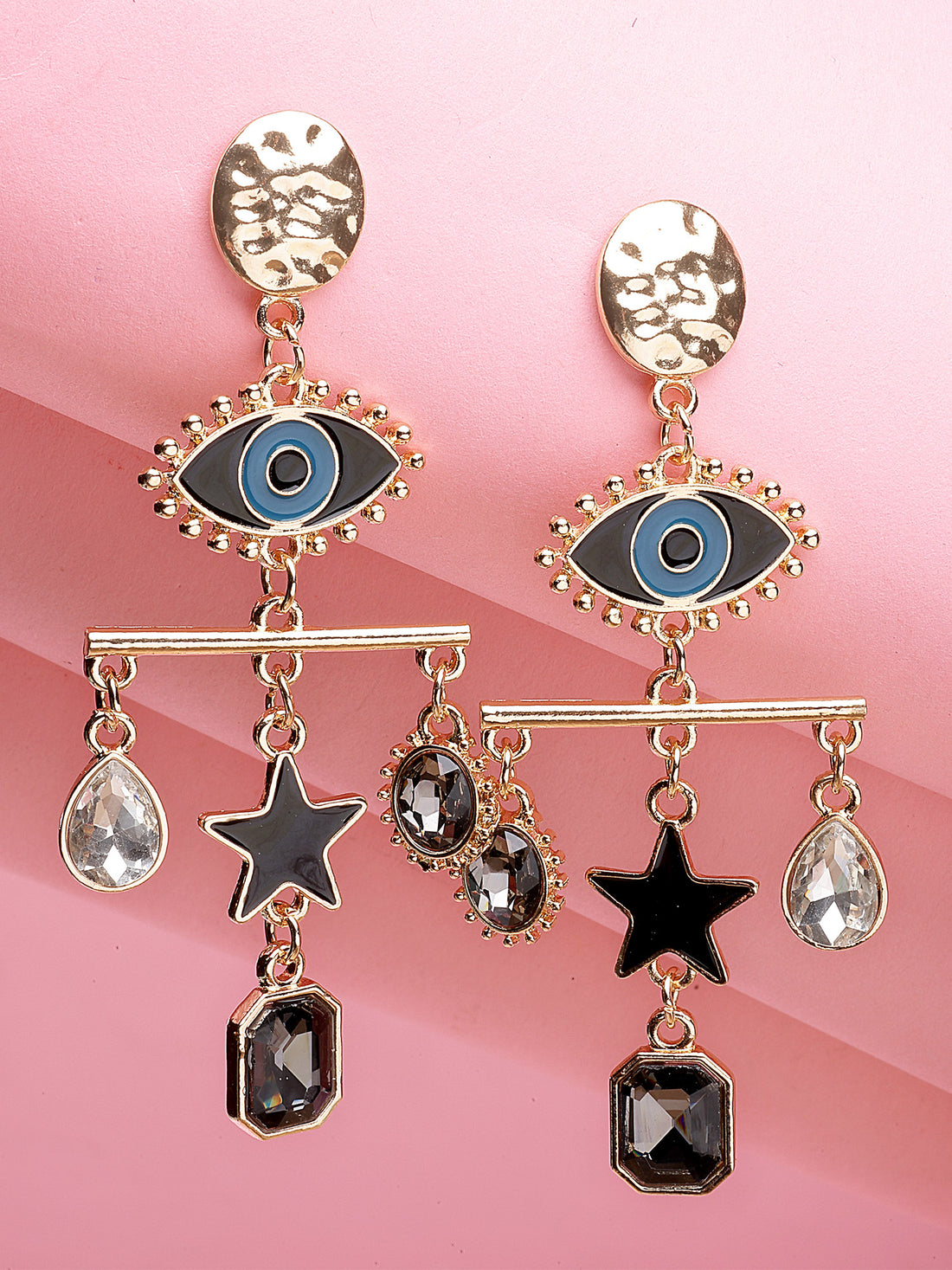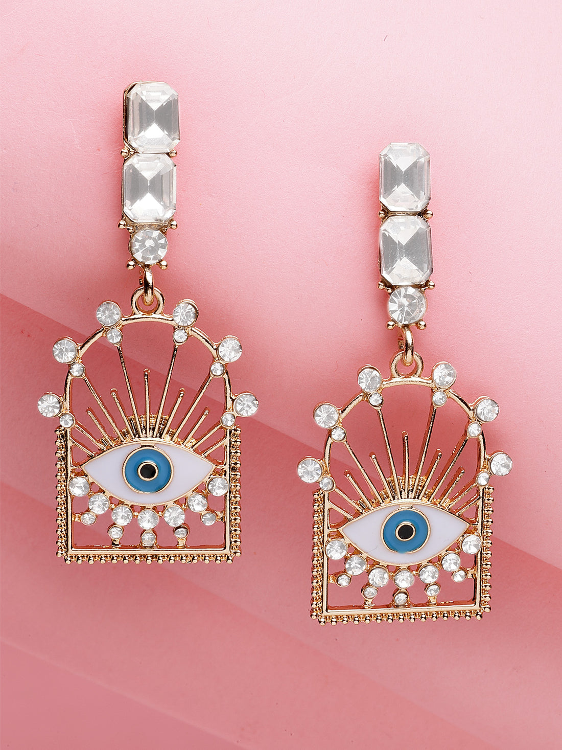 Bohey by KARATCART Gold-Plated Multicolor Evil Eye Drop Earrings for Women