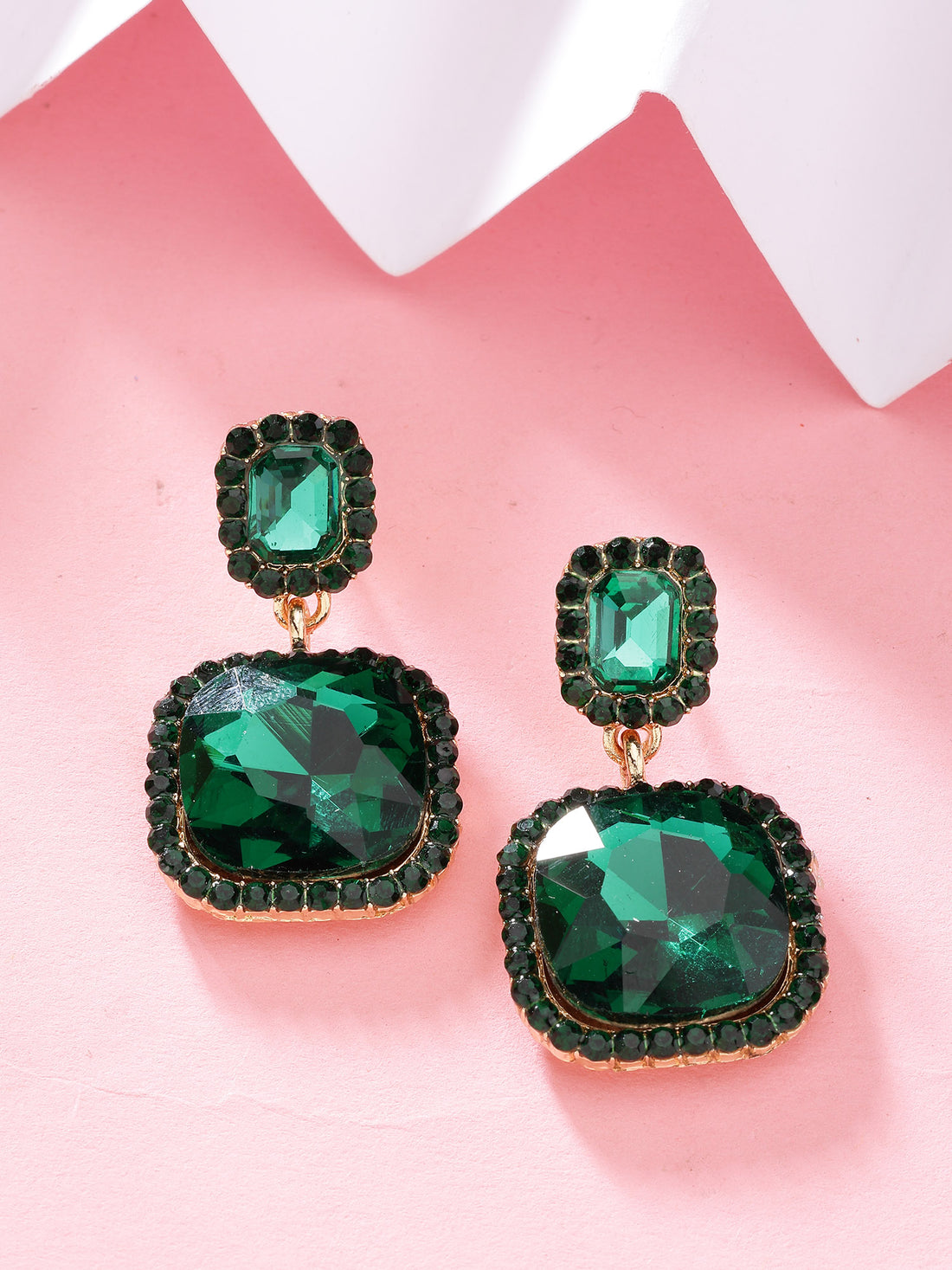 Bohey by KARATCART Gold-Plated Contemporary Green Drop Earrings for Women