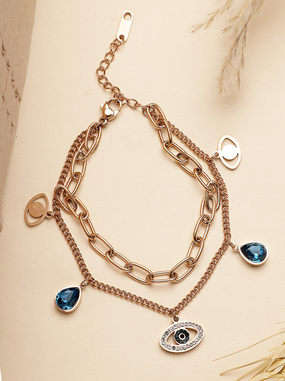 Bohey by KARATCART Rose Gold Plated Evil Eye Charm Chain Bracelet for Women