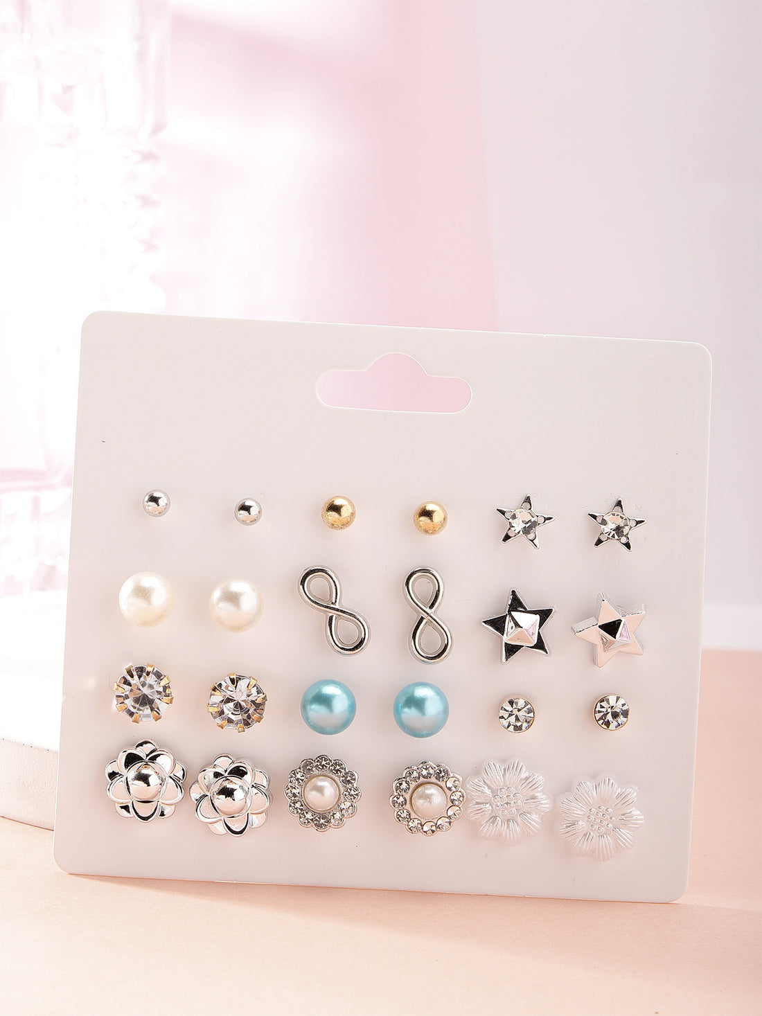 Bohey by KARATCART Set of 12 Gold and Silver Contemporary Studs Earrings Combo