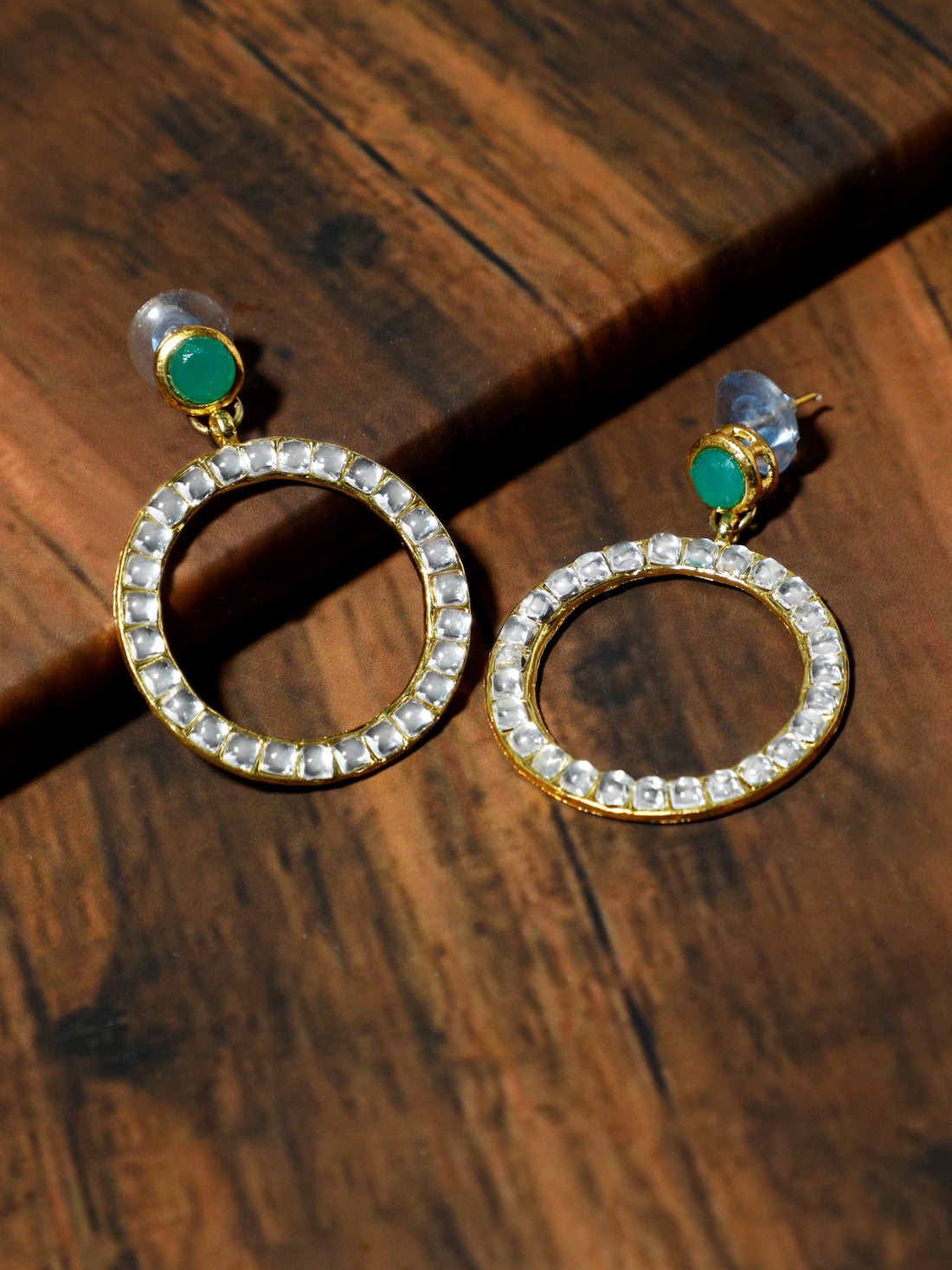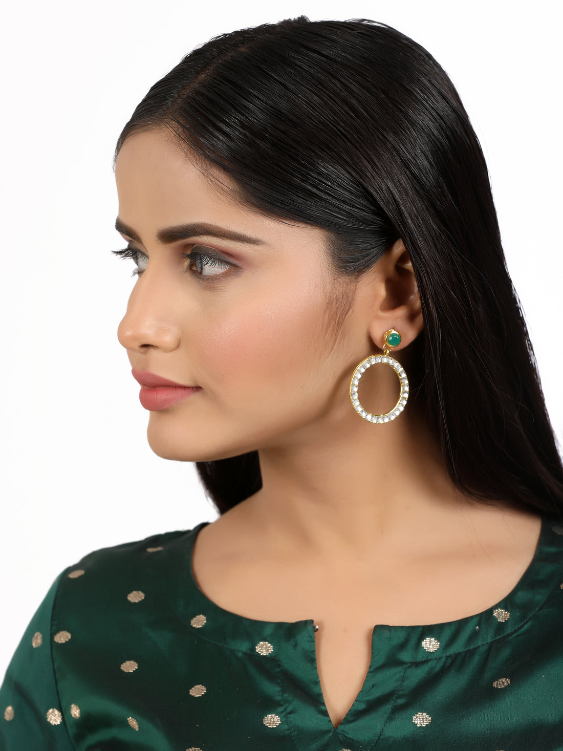 Gold-Tone Kundan Hoop Earrings with Embedded Green Stone. This set of earrings can be best...