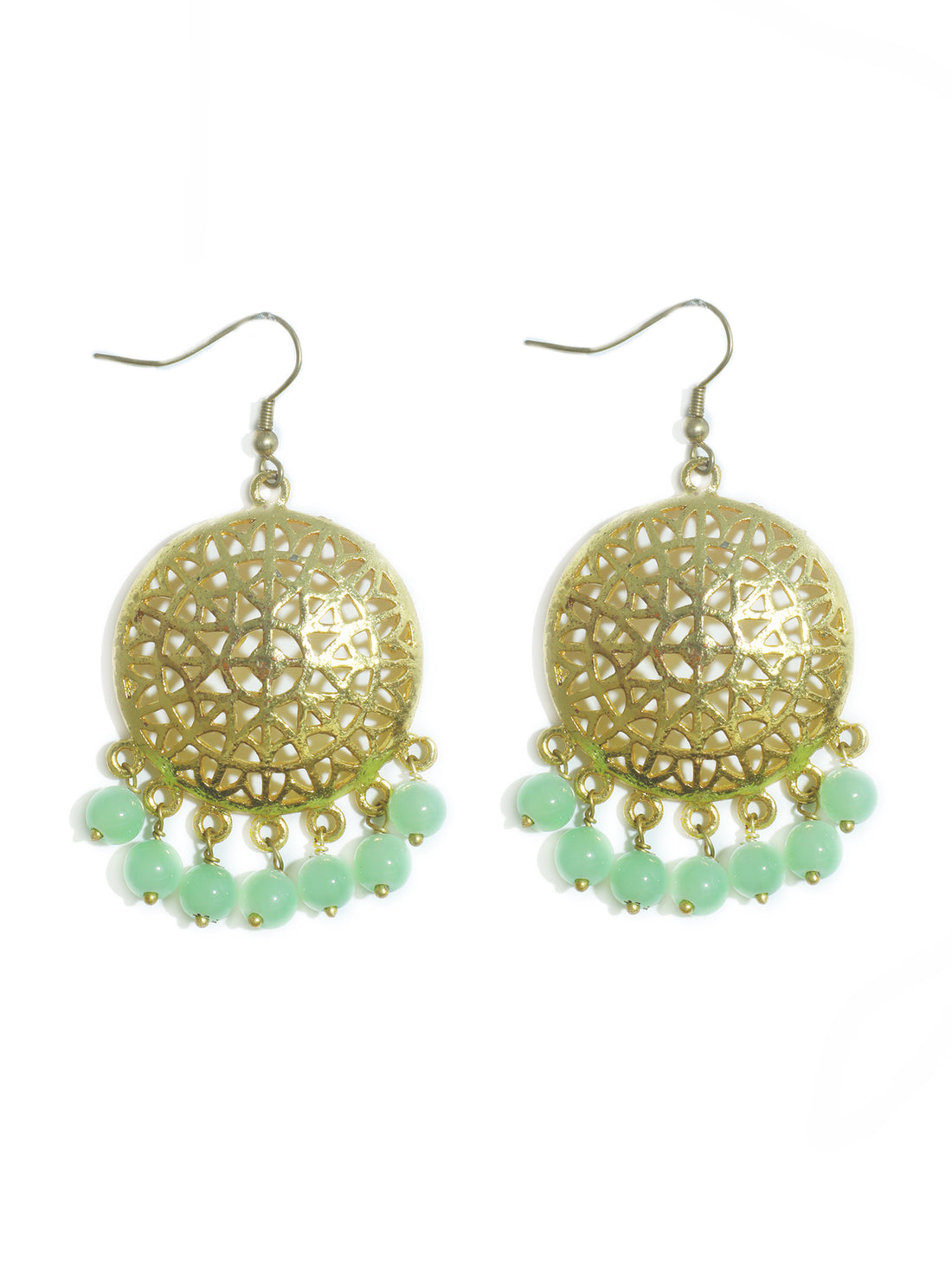 Gold Plated Mint Green Beads Kundan Dangler Earrings for Women