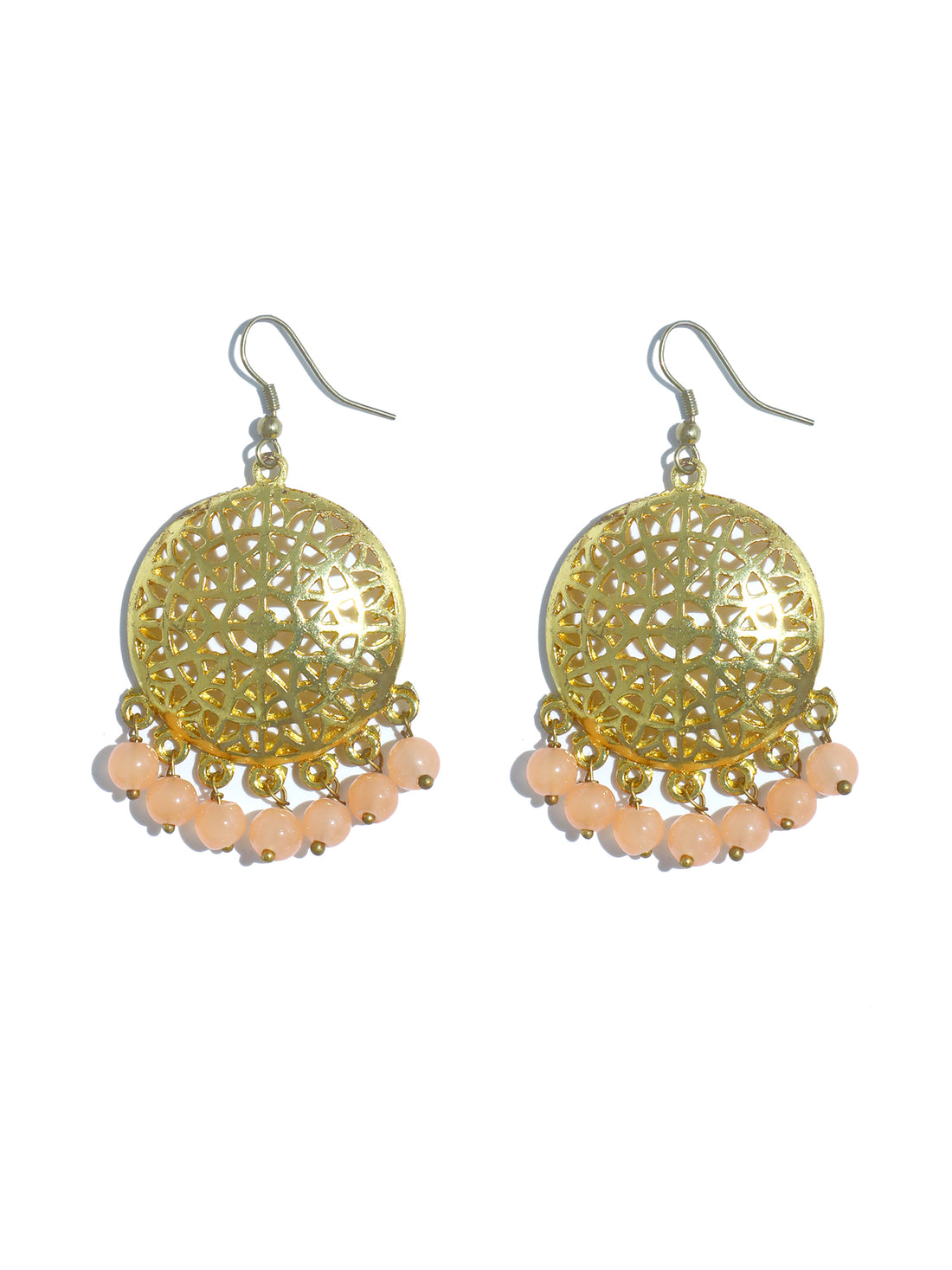 Gold Plated Peach Beads Kundan Dangler Earrings for Women