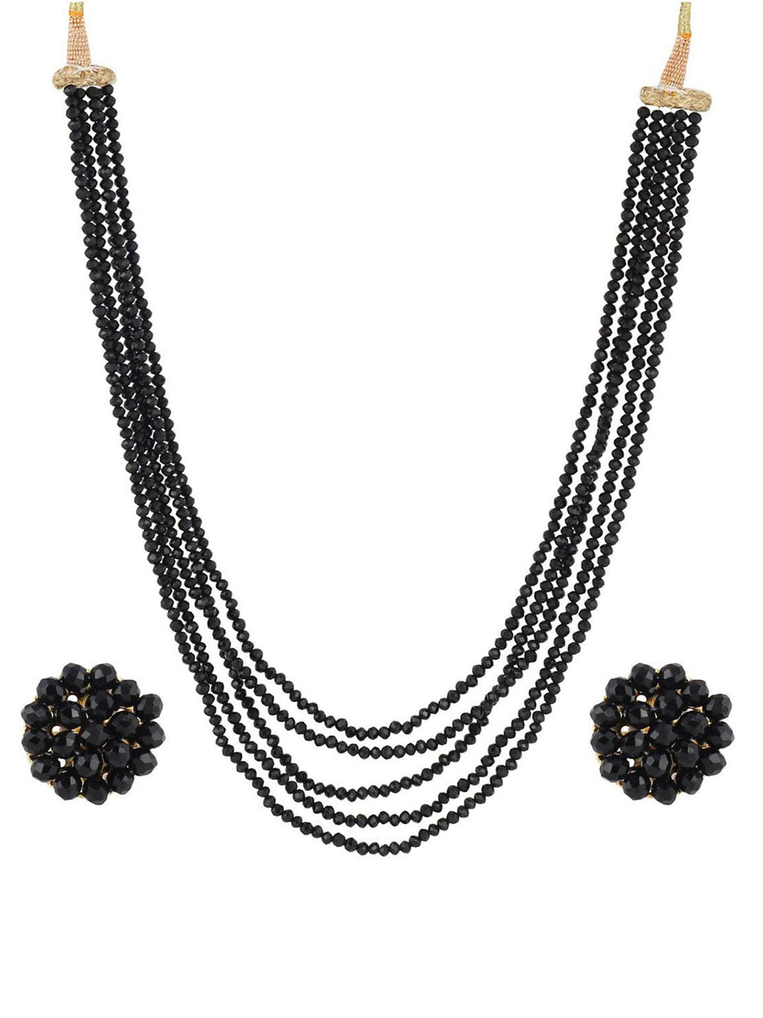 Black Crystal Beads Multi-Strand Necklace Set Necklace Length - 18 Inches, Earrings Length - 1.75...