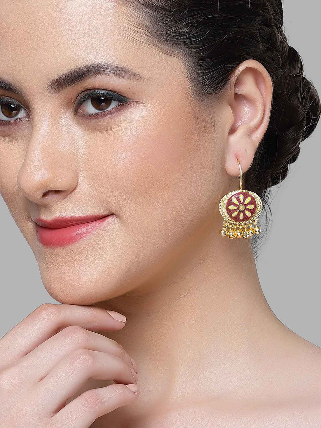 Karatcart Gold Plated Red Polki Kundan Studded Jhumki Earrings for Women